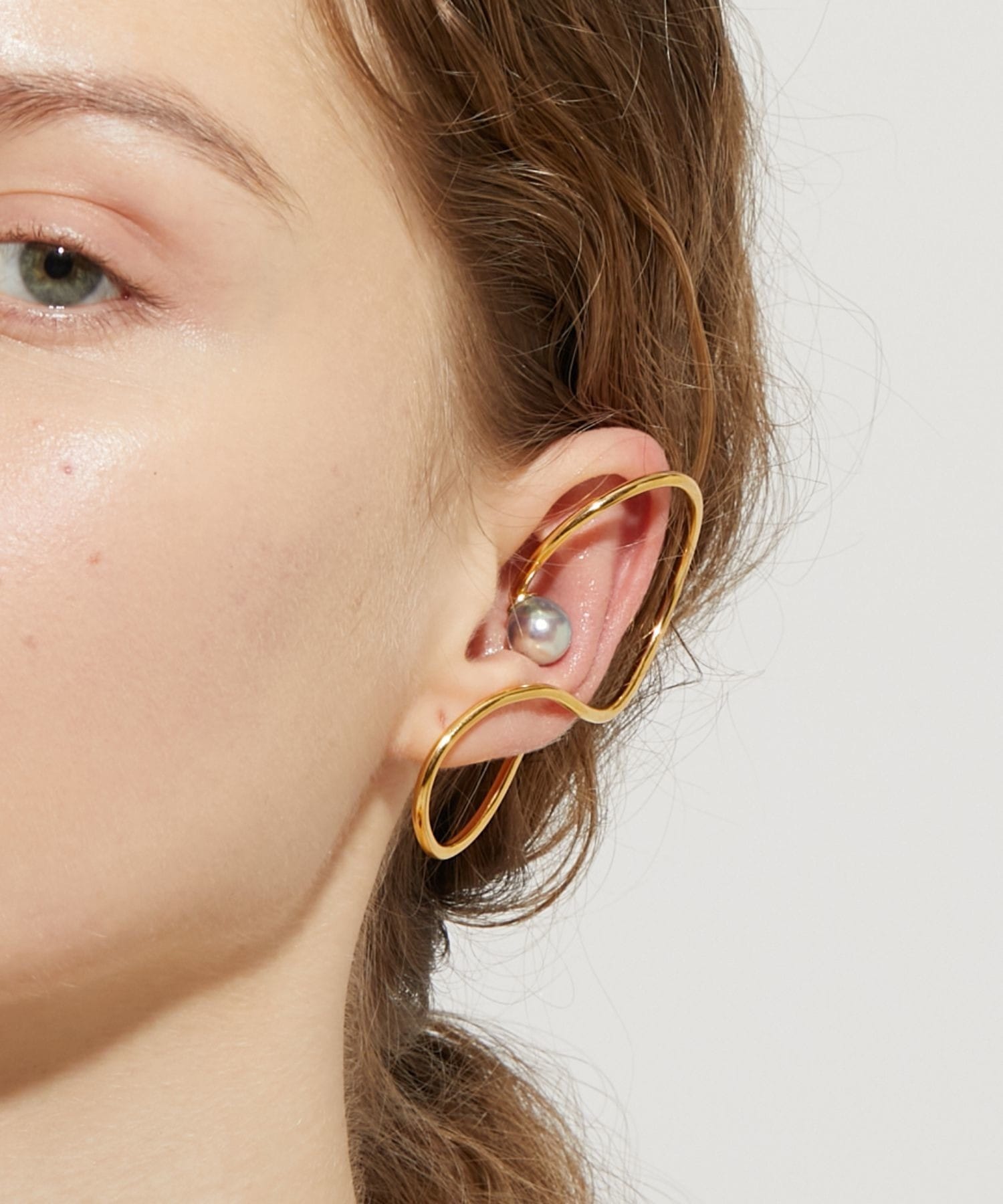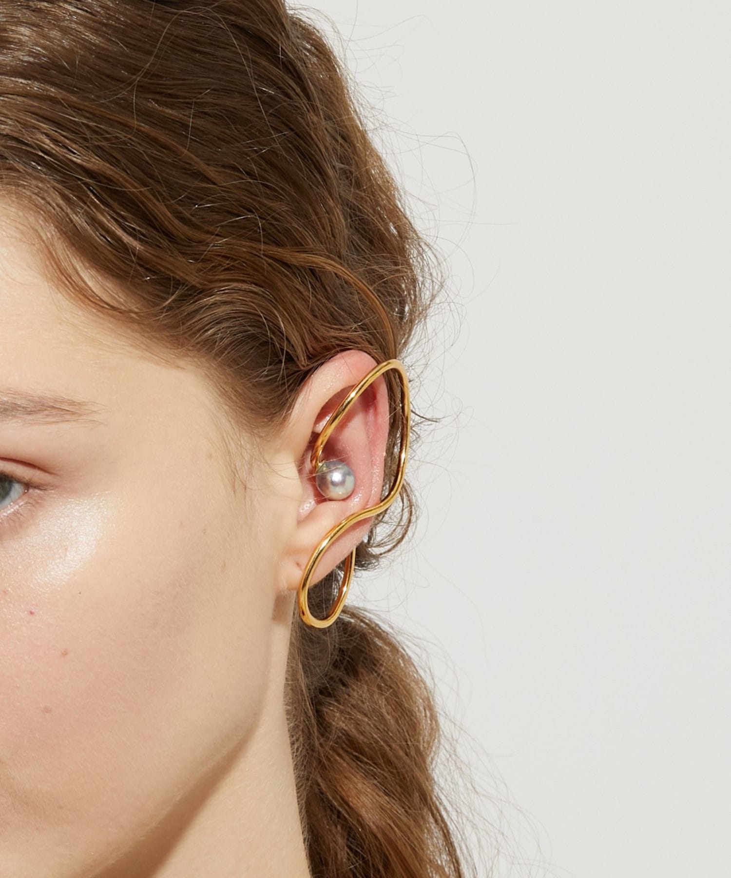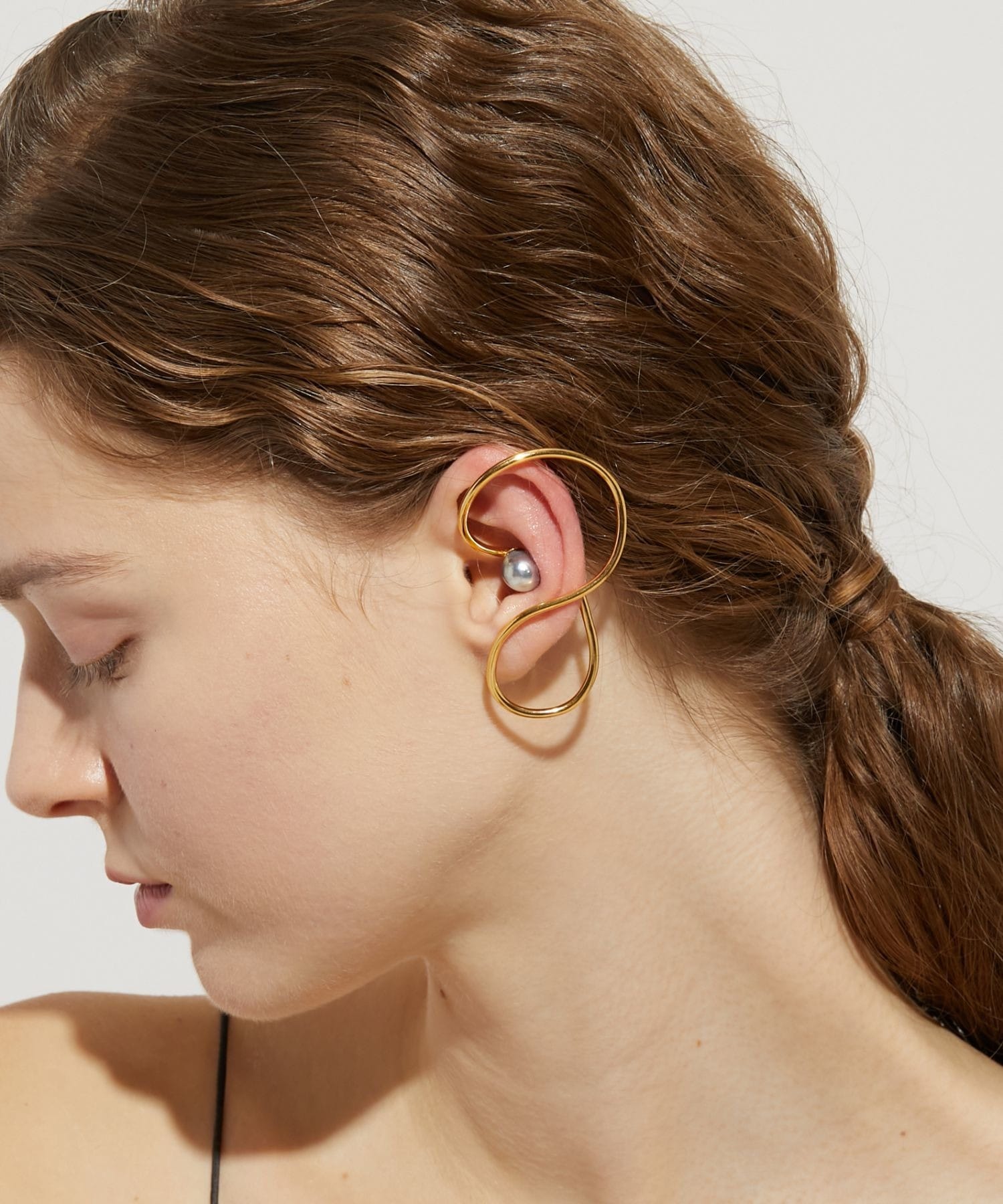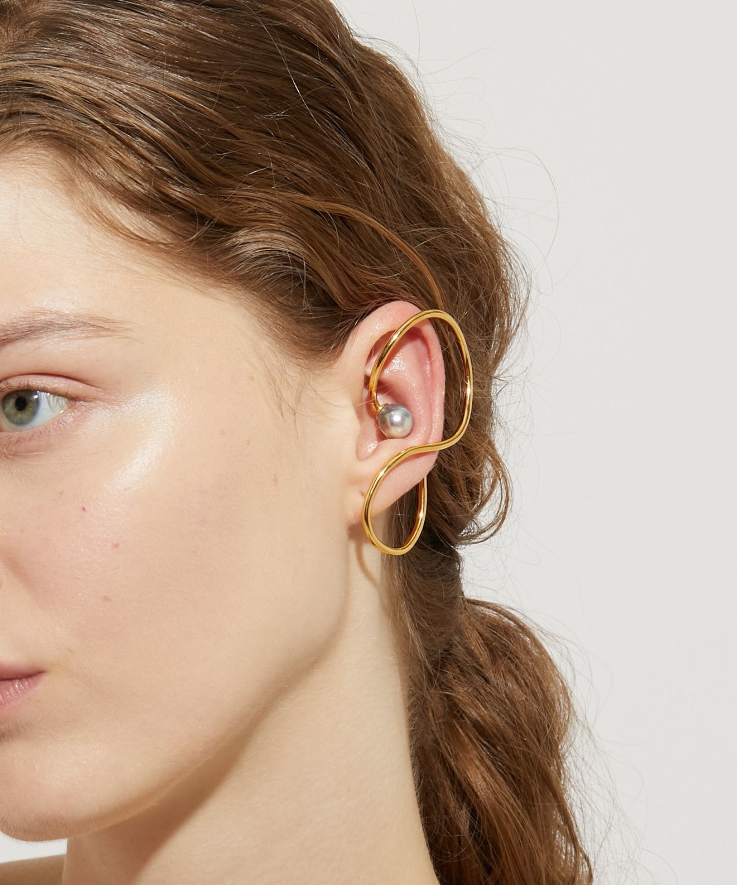 We discovered these beautiful Akoya pearls, with their exceptional luster and shine, in the natural surroundings of Amakusa, Kumamoto Prefecture. Brought to life amid the bounty of the ocean, these vibrant Akoya pearls evoke a sense of the mysteries of nature. This ear cuff features a large Akoya pearl. The modern, futuristic design that covers the entire ear adds a bold presence to your hands and ears. A single piece can accentuate your ear and add a subtle touch of elegance. *Please note that due to the design of this ear cuff, it may not fit everyone's ears.