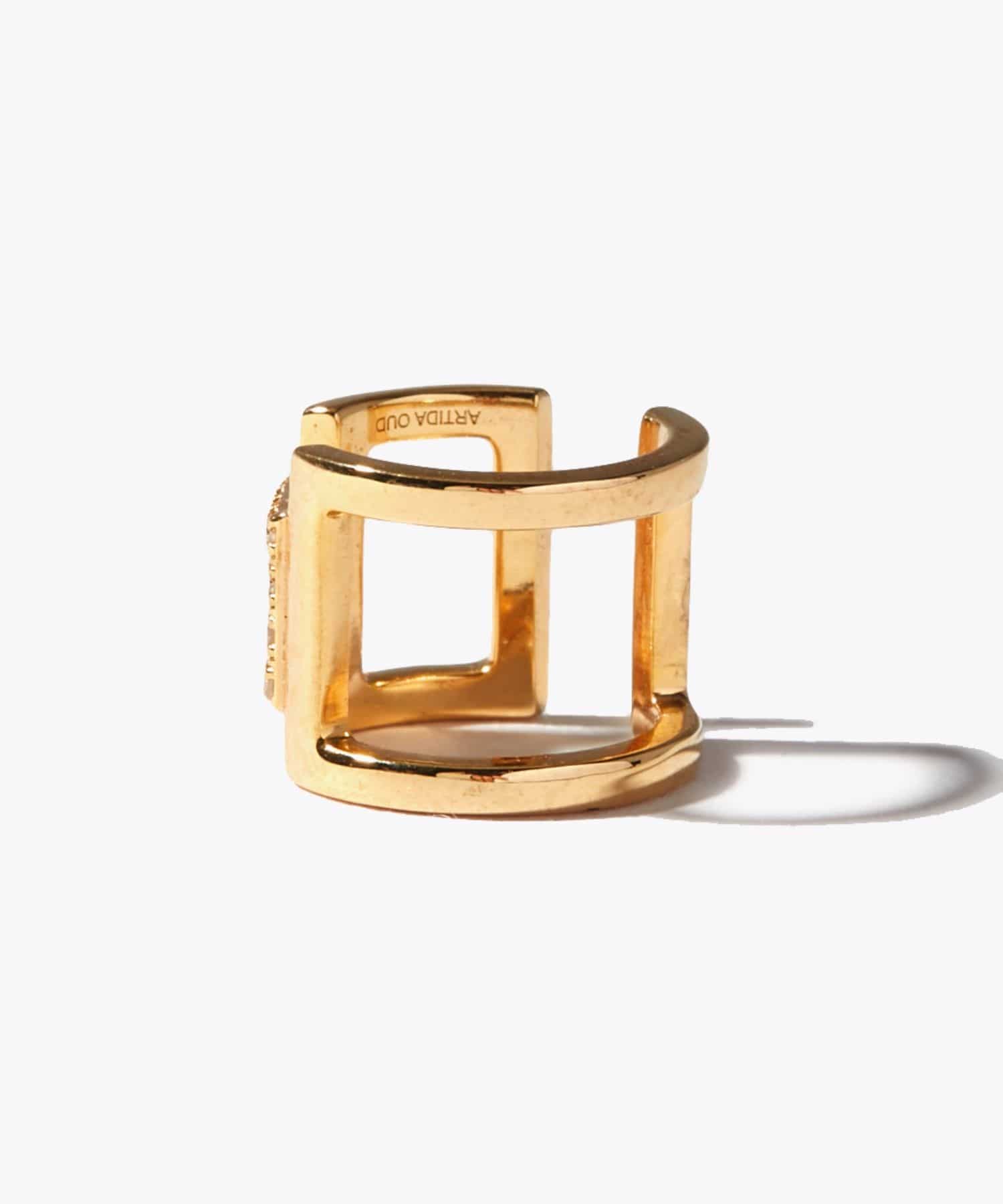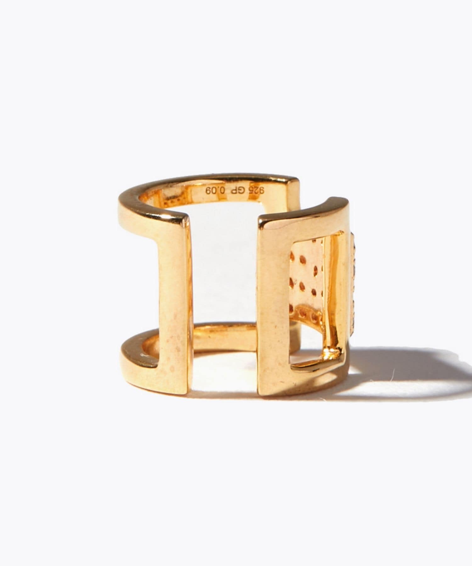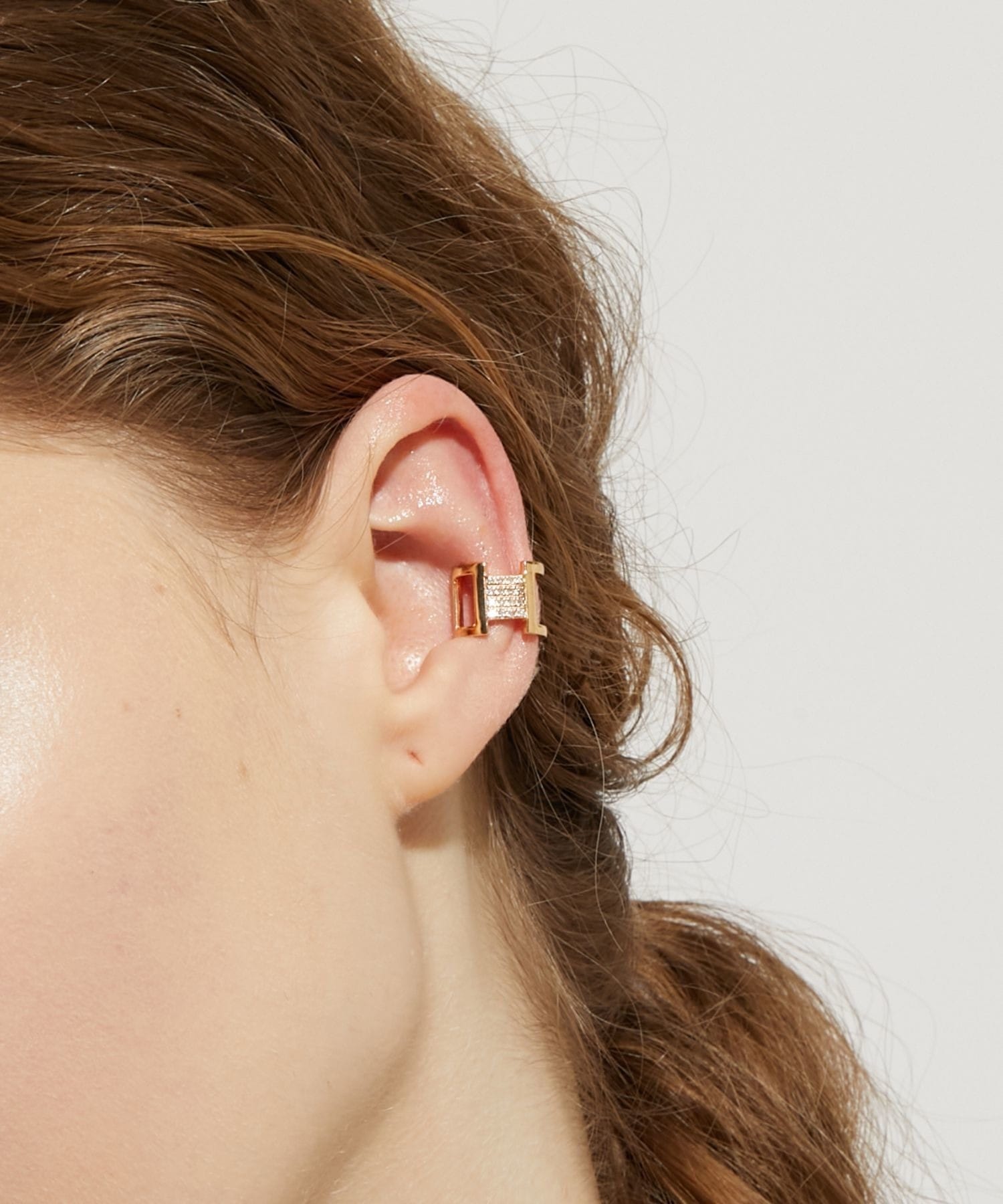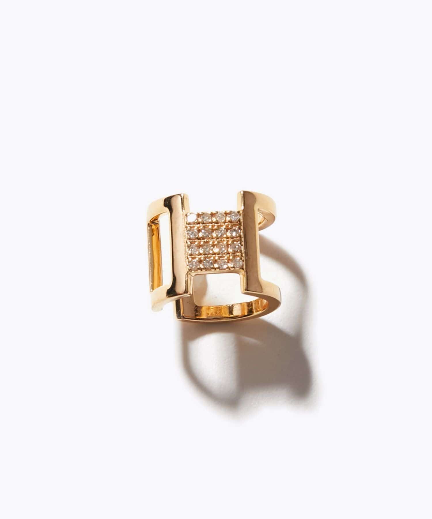 This sophisticated ear cuff offers volume and presence, yet a comfortable fit. The geometric pattern, inspired by the glamorous mood of the 1980s, radiates a brilliant light. The stylish sparkle of the delicate diamonds paved over it makes it an all-in-one fashion accent. A timeless design that combines edge and elegance.