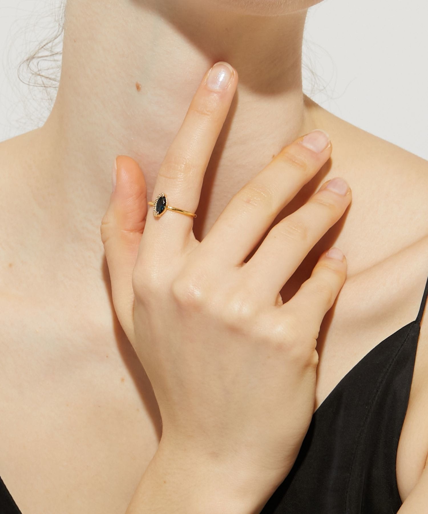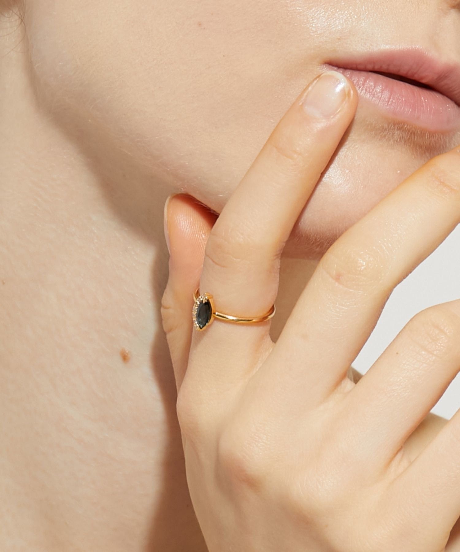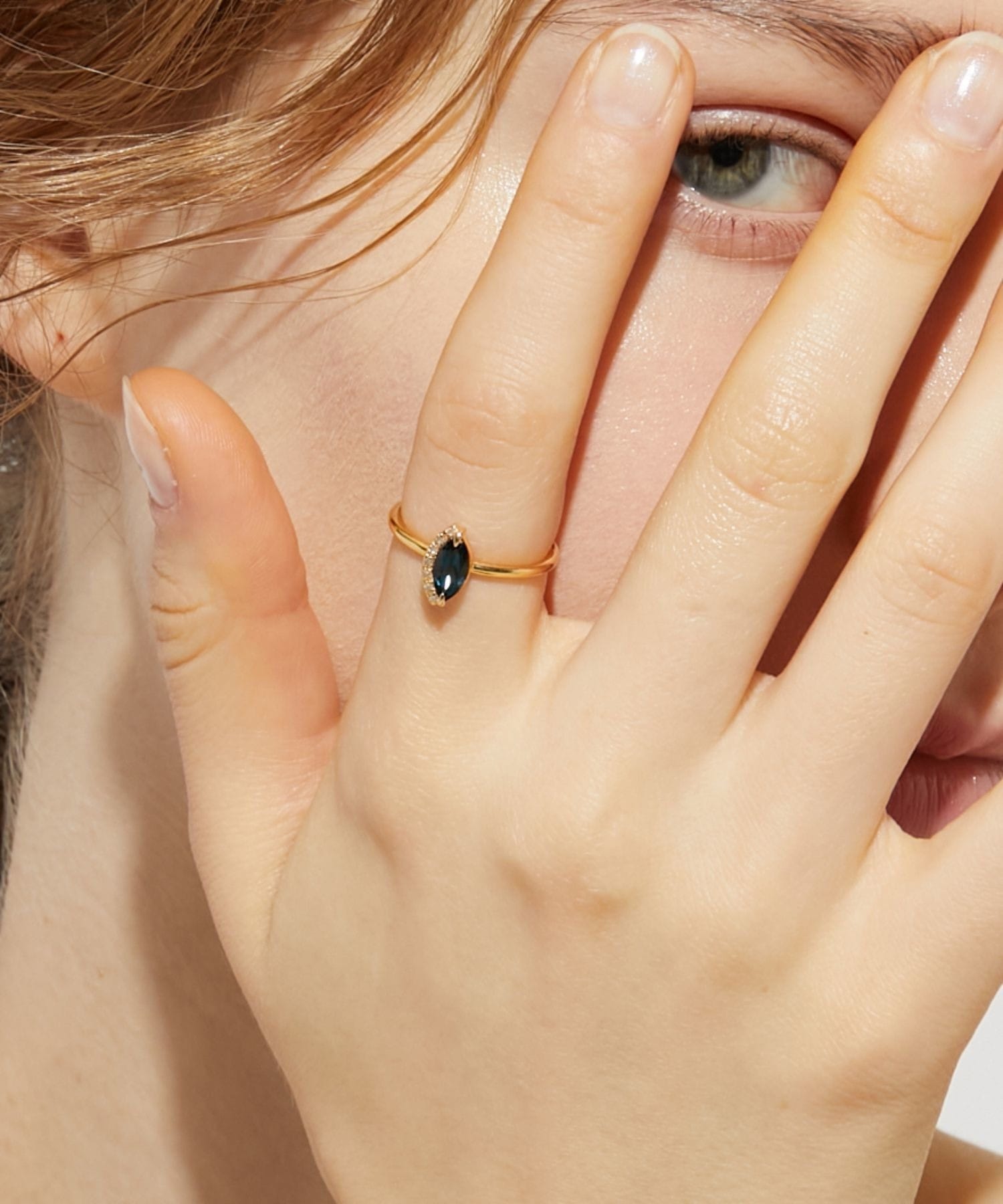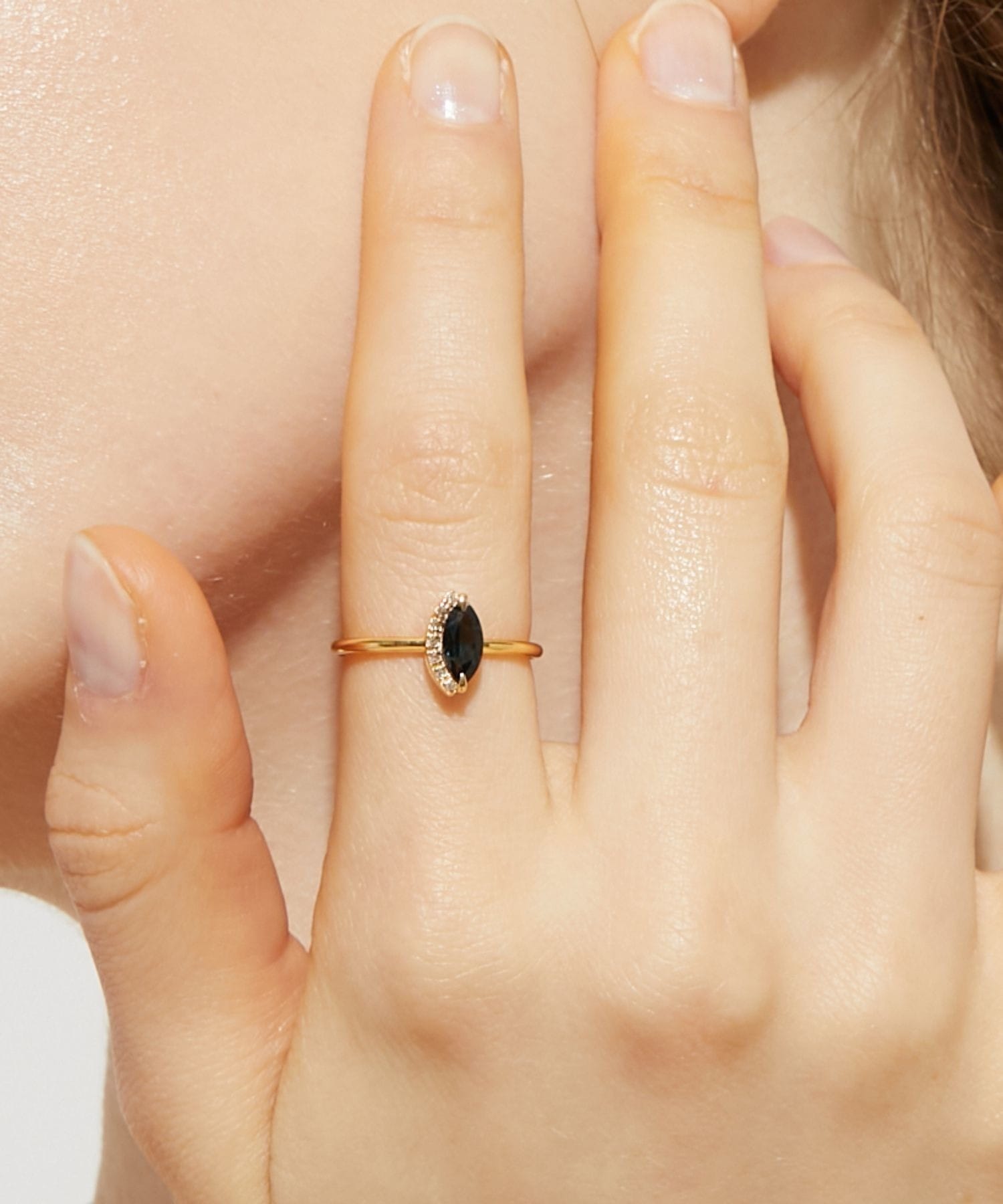 This ring features a marquise-shaped London blue topaz reminiscent of the deep sea and pav? diamonds. The stone's size makes it suitable for everyday wear, yet its deep blue color is striking. We also recommend layering it with other natural stones.