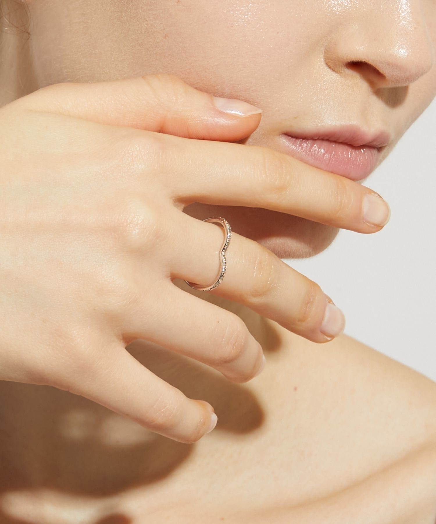 This unique heart-shaped ring gently adorns the wrist with its curvaceous silver accents, while the single-cut pav? design sparkles with its brilliance. It can also be worn as a hidden heart motif or as a charm. It can also be layered with other rings for added style.