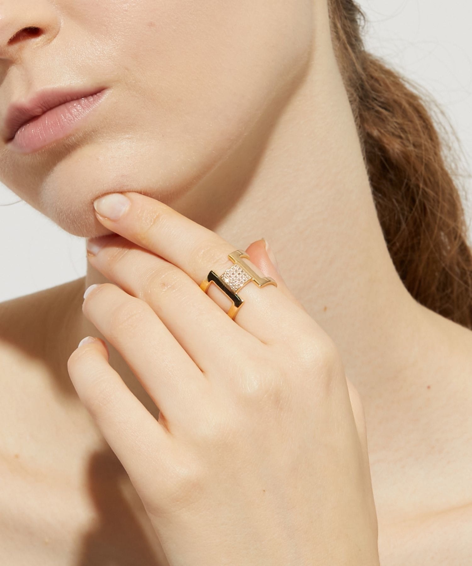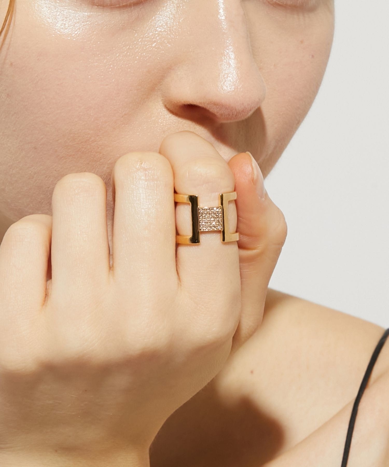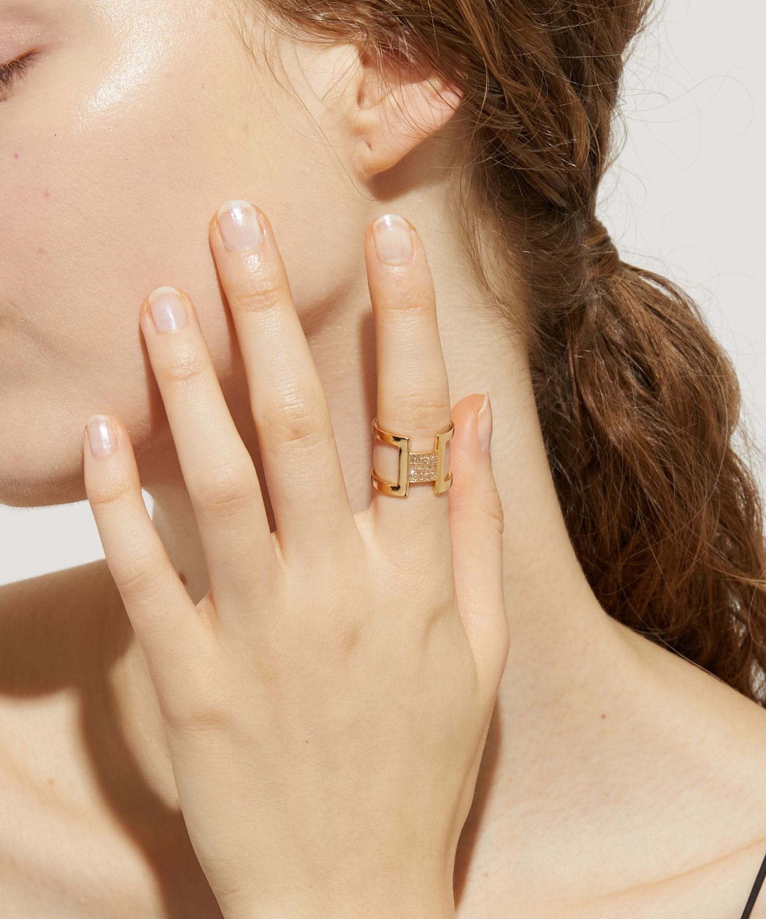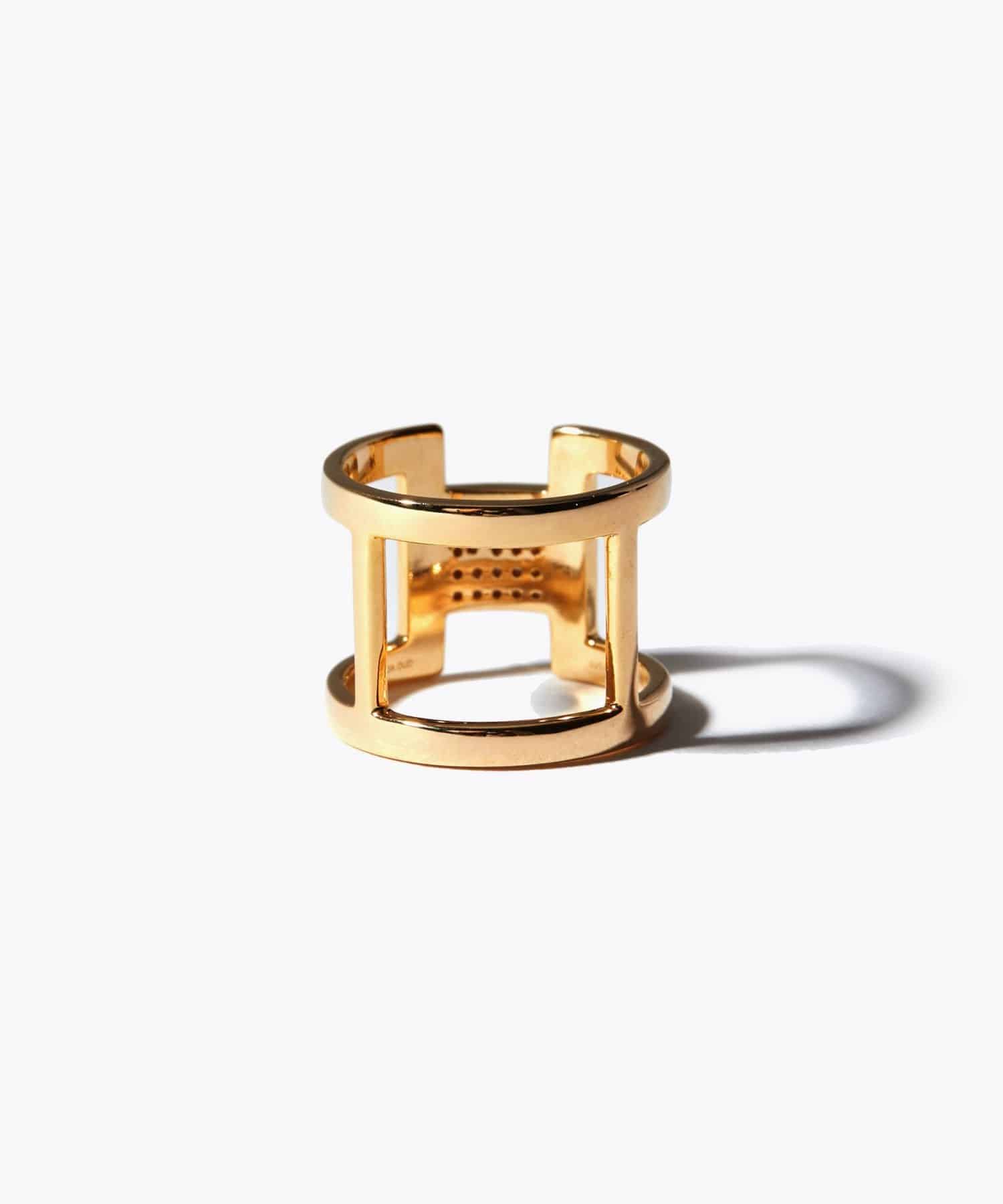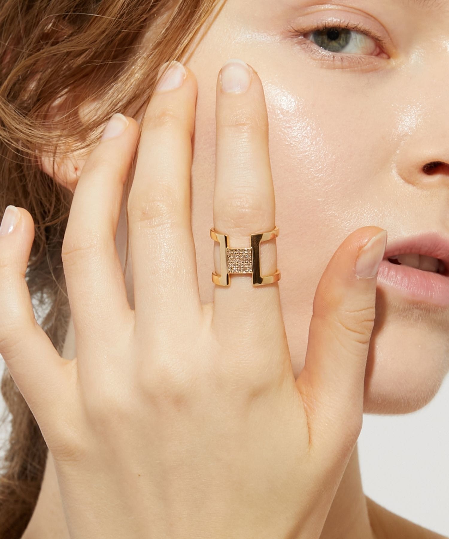 This sophisticated ring has presence and volume, yet fits neatly on the fingertip. The geometric pattern, inspired by the glamorous mood of the 1980s, emits a brilliant light. The sparkle of the delicate melee diamonds is enhanced by layering it with a minimalist ring or chain ring for a more modern look. A timeless design that combines edge and elegance.
