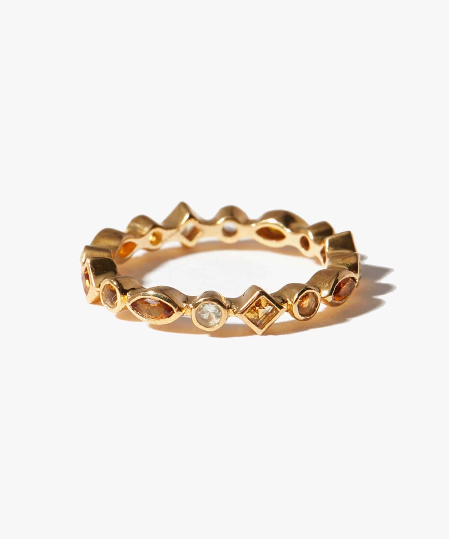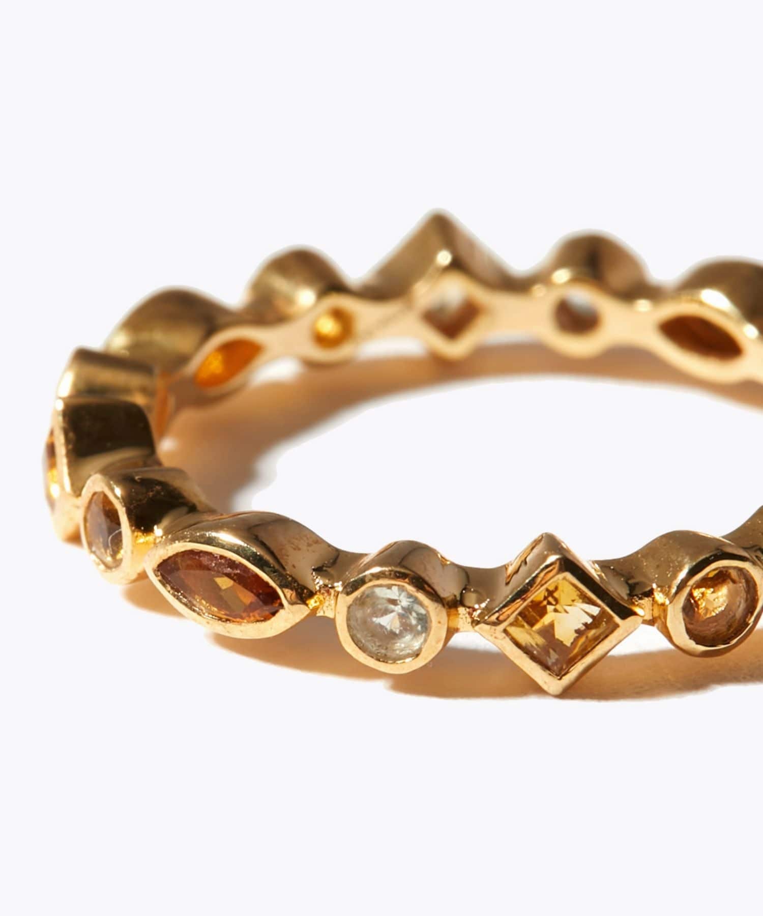 This ring features adorable yellow sapphires, citrine, and lemon quartz in various shapes, and is recommended for layering with other natural stones.