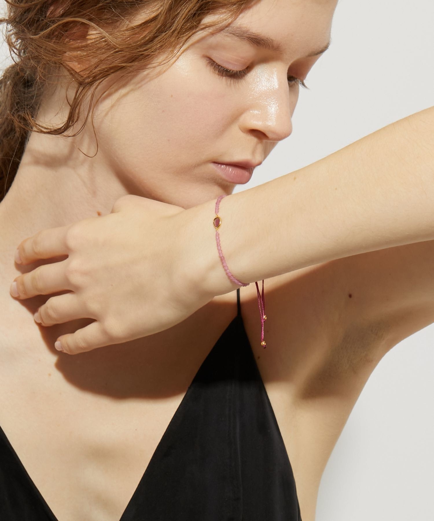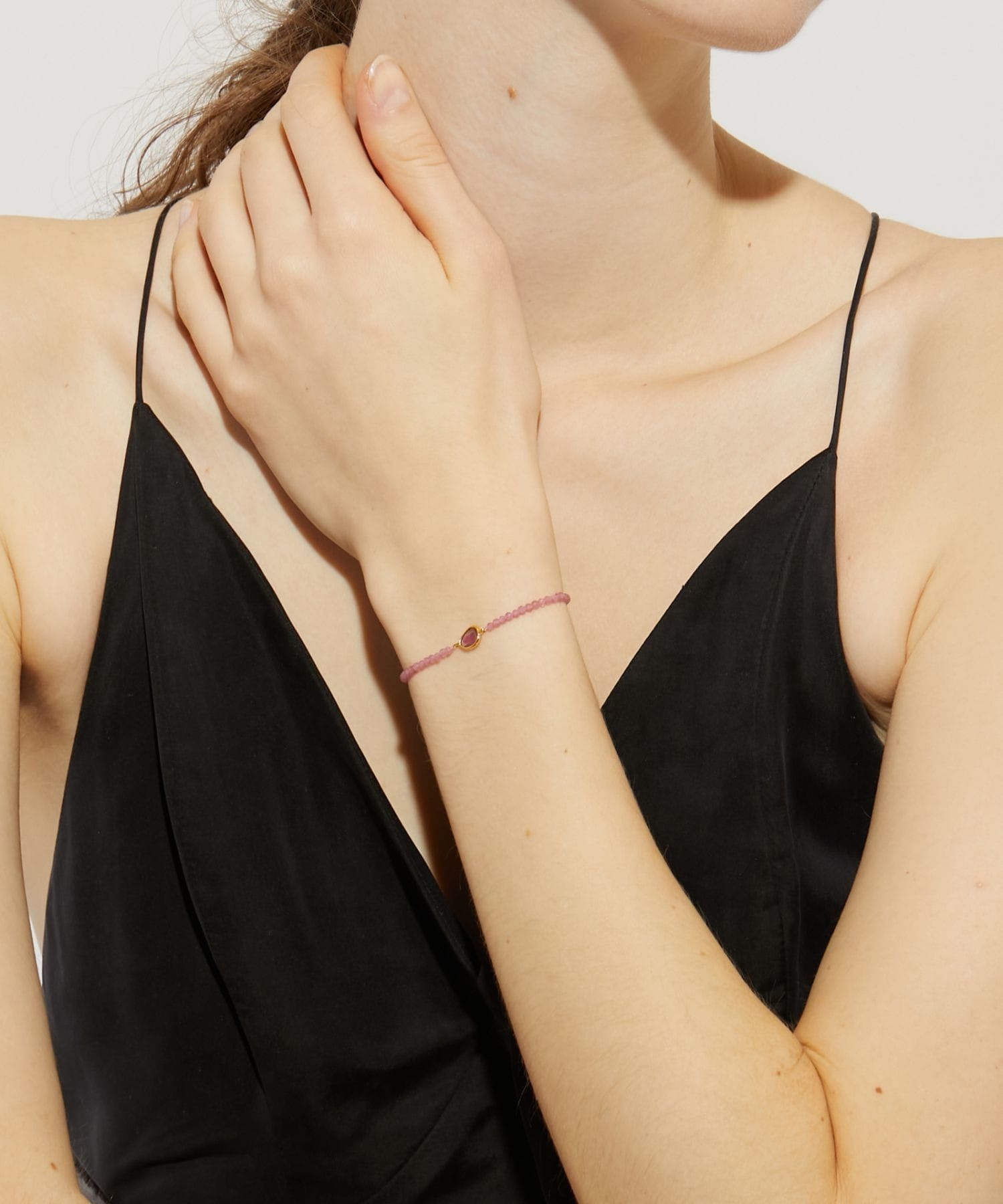 A bracelet featuring rose-cut stones, charmingly sparkling like pebbles, set in simple frames and linked together with stones of the same variety. Perfect as your own talisman, and also recommended as a gift for someone special.