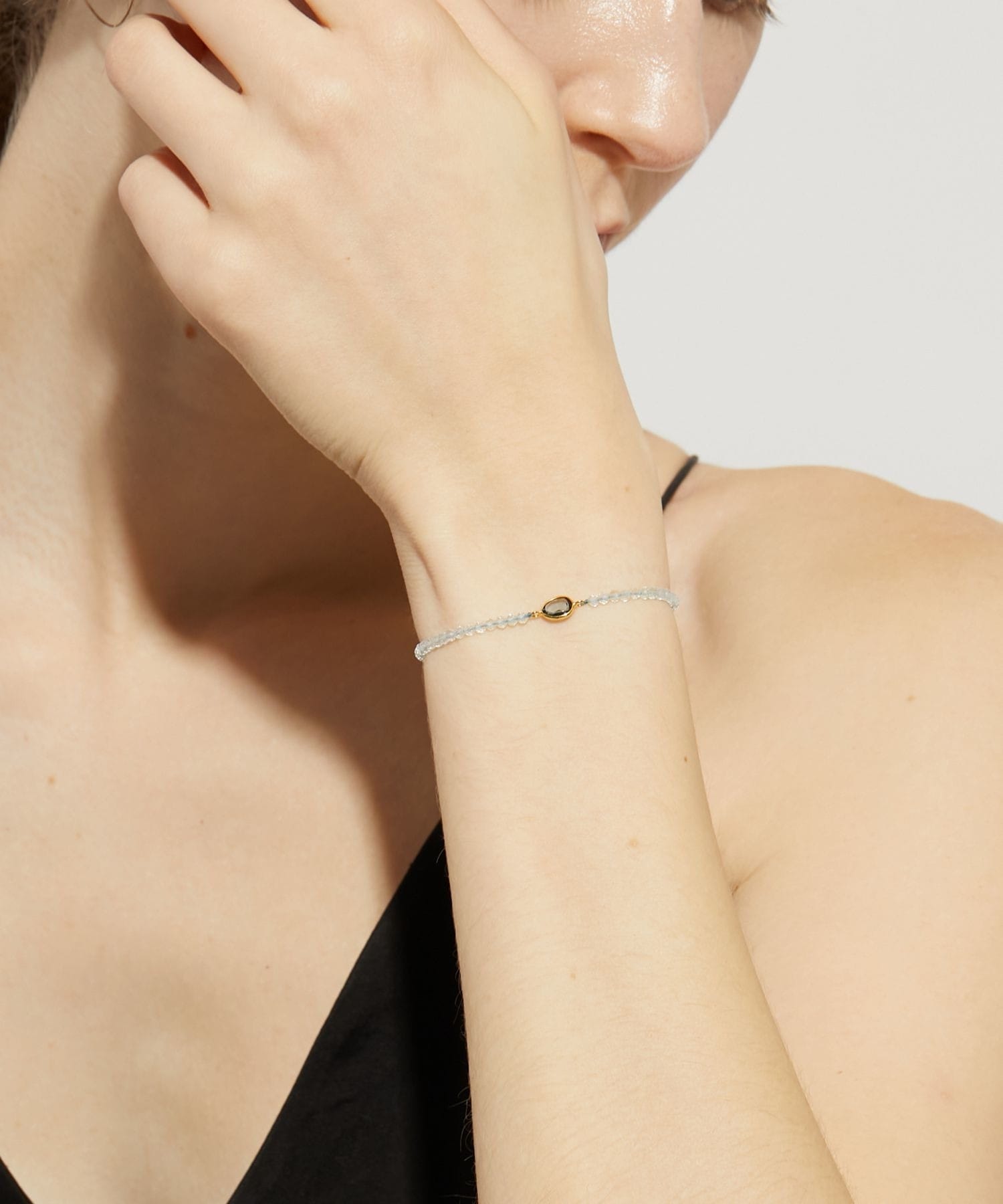 A bracelet featuring rose-cut stones, charmingly sparkling like pebbles, set in simple frames and linked together with stones of the same variety. Perfect as your own talisman, and also recommended as a gift for someone special.