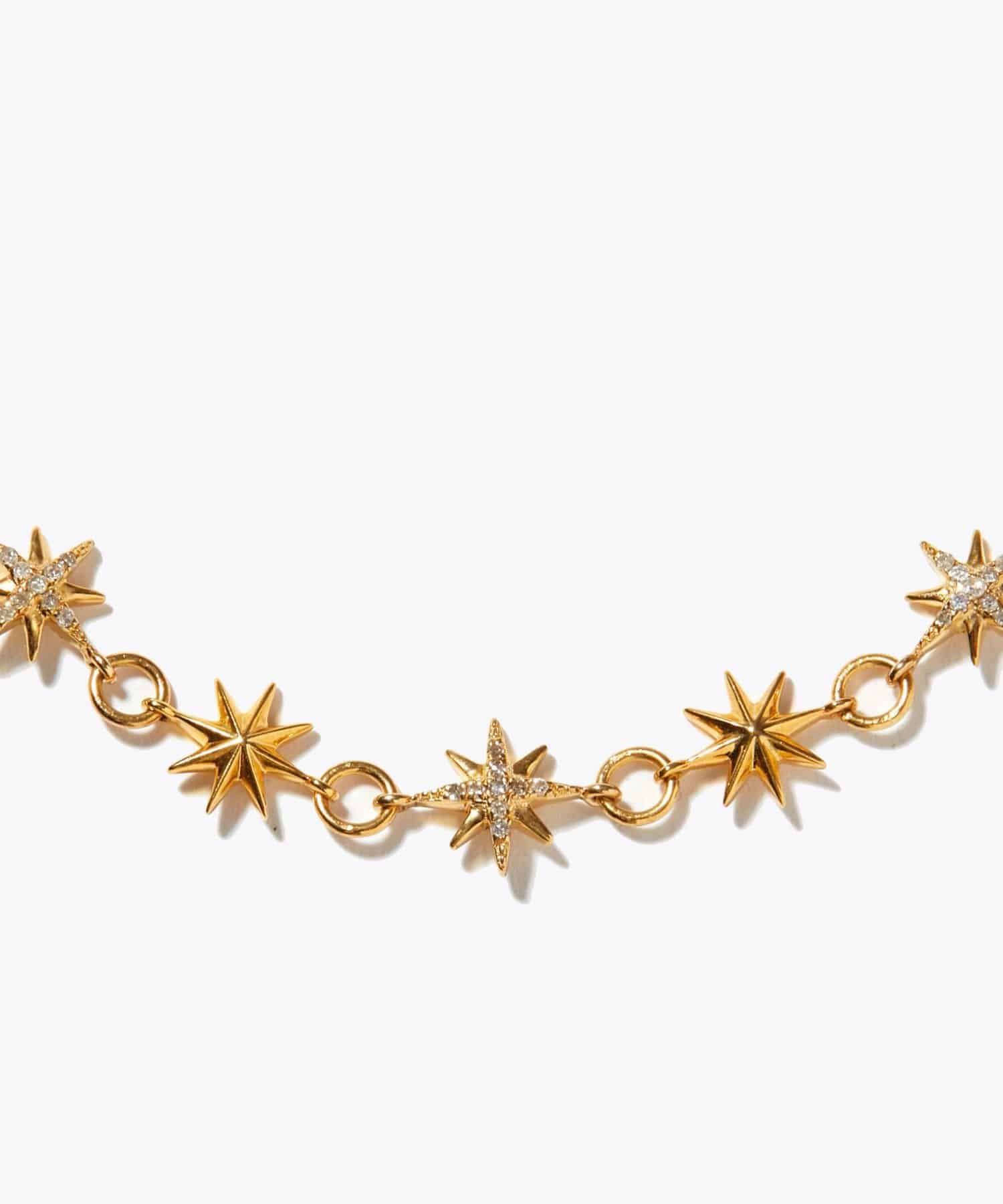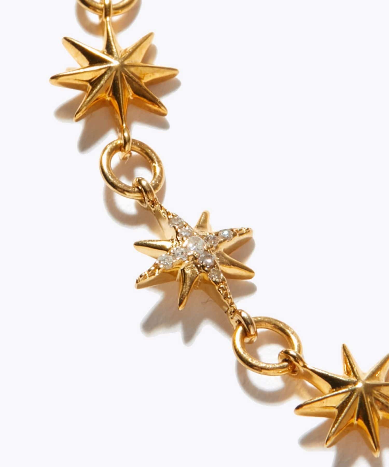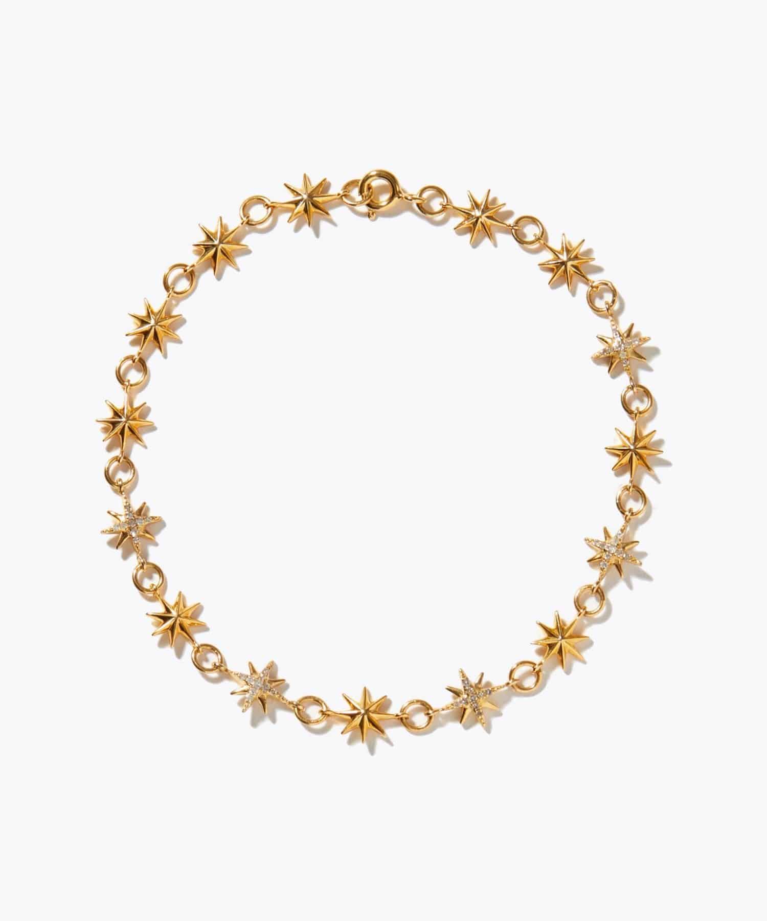 The eight-pointed star motif is set in a circle and is embellished with sparkling diamonds. This gorgeous bracelet has an adjustable clasp, so you can enjoy it with your preferred fit.