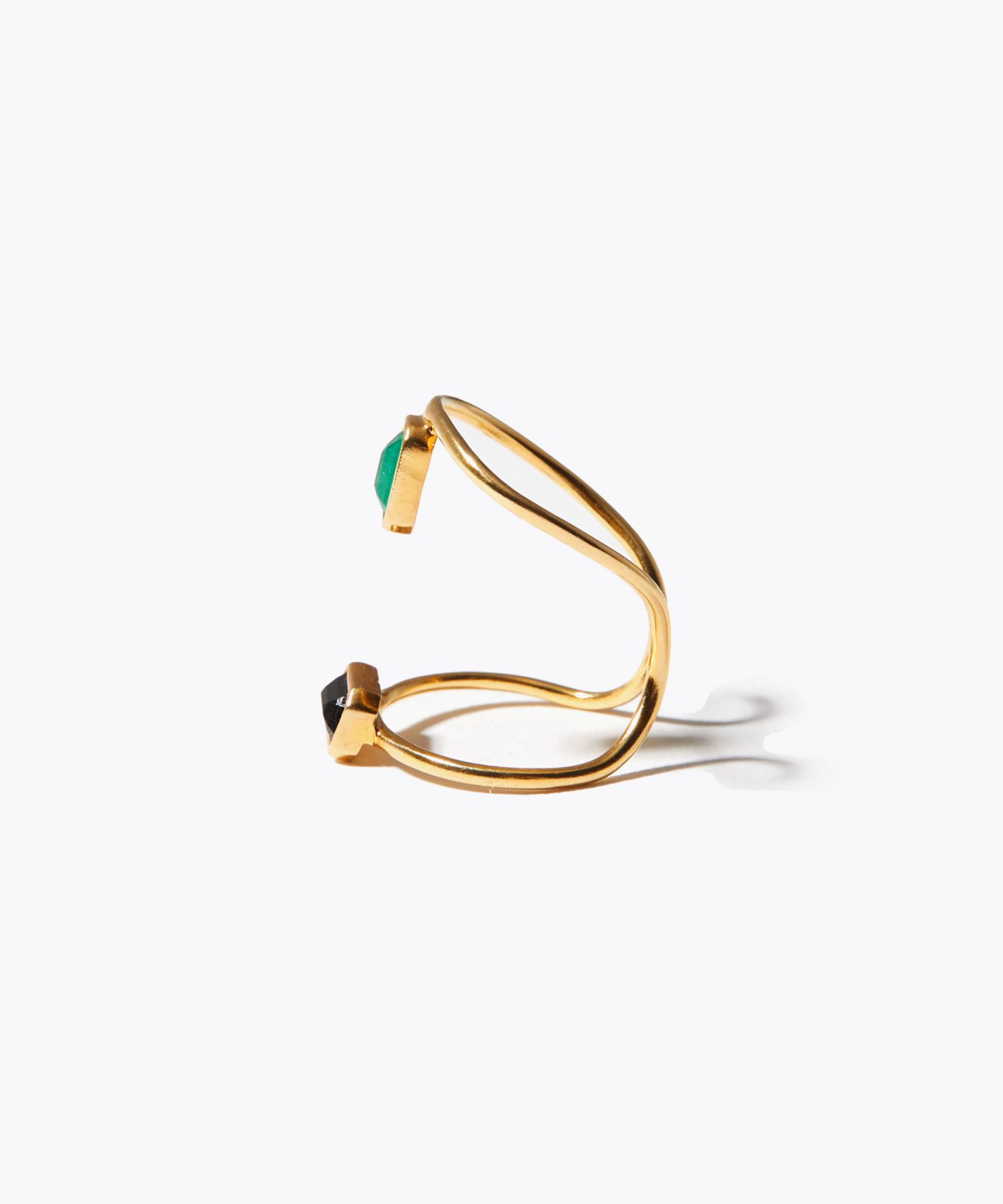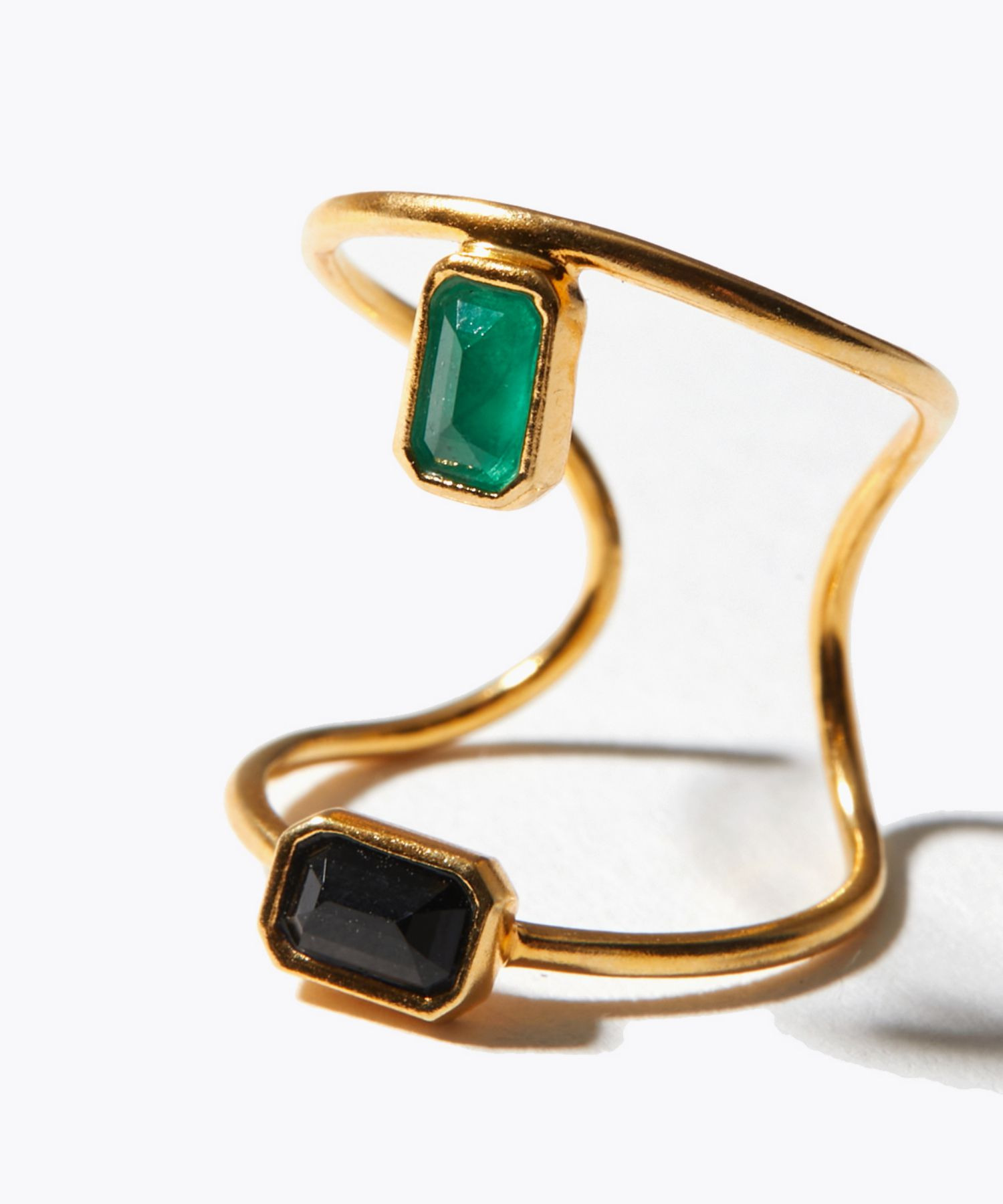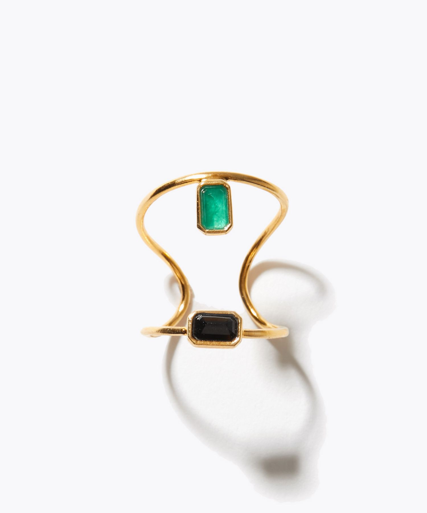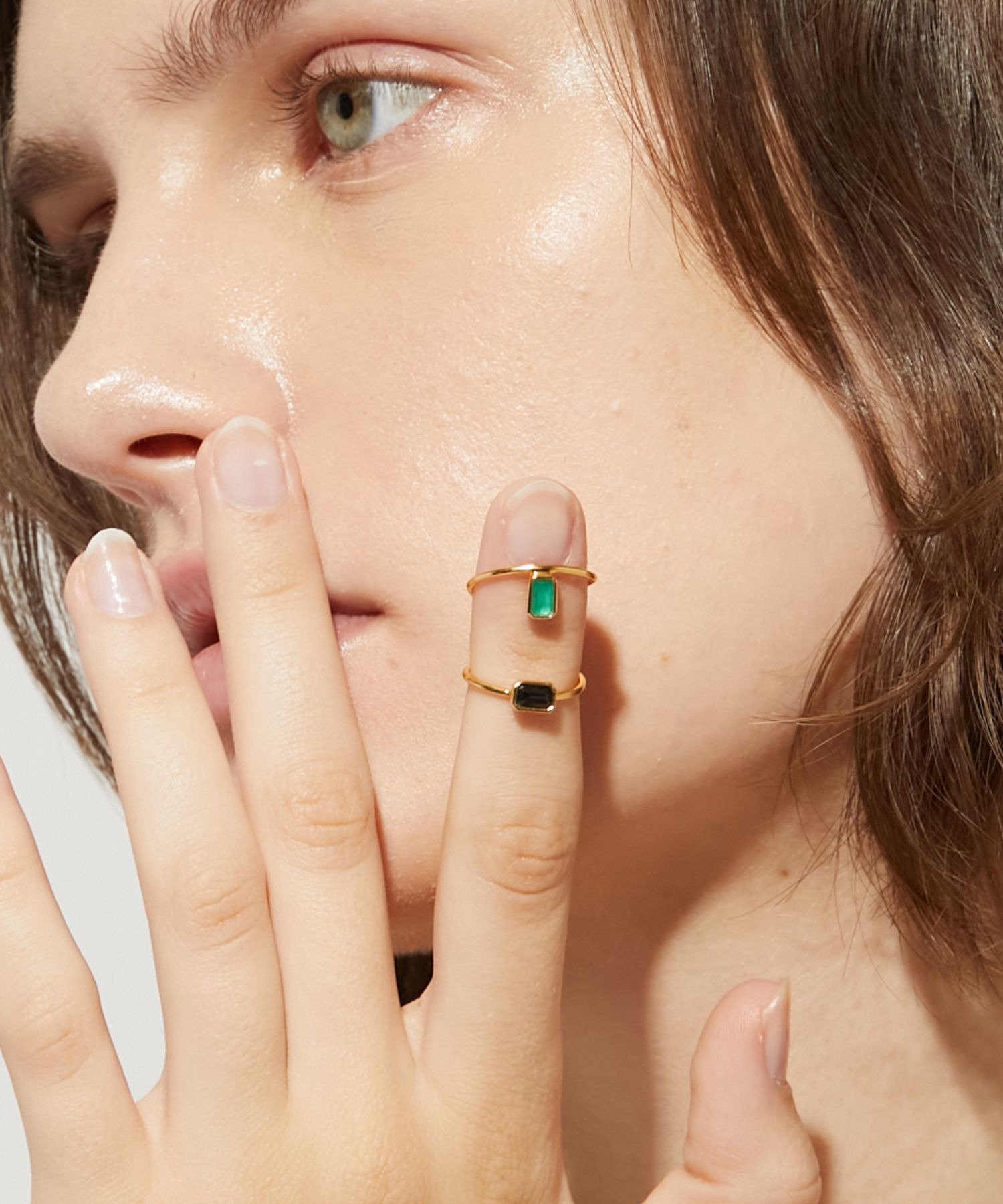 サイズ:ring:width1.2mm main_part:length20mm×15.8mm emerald:(almost)length5mm×width3mm onyx:(almost)length3mm×width5mm