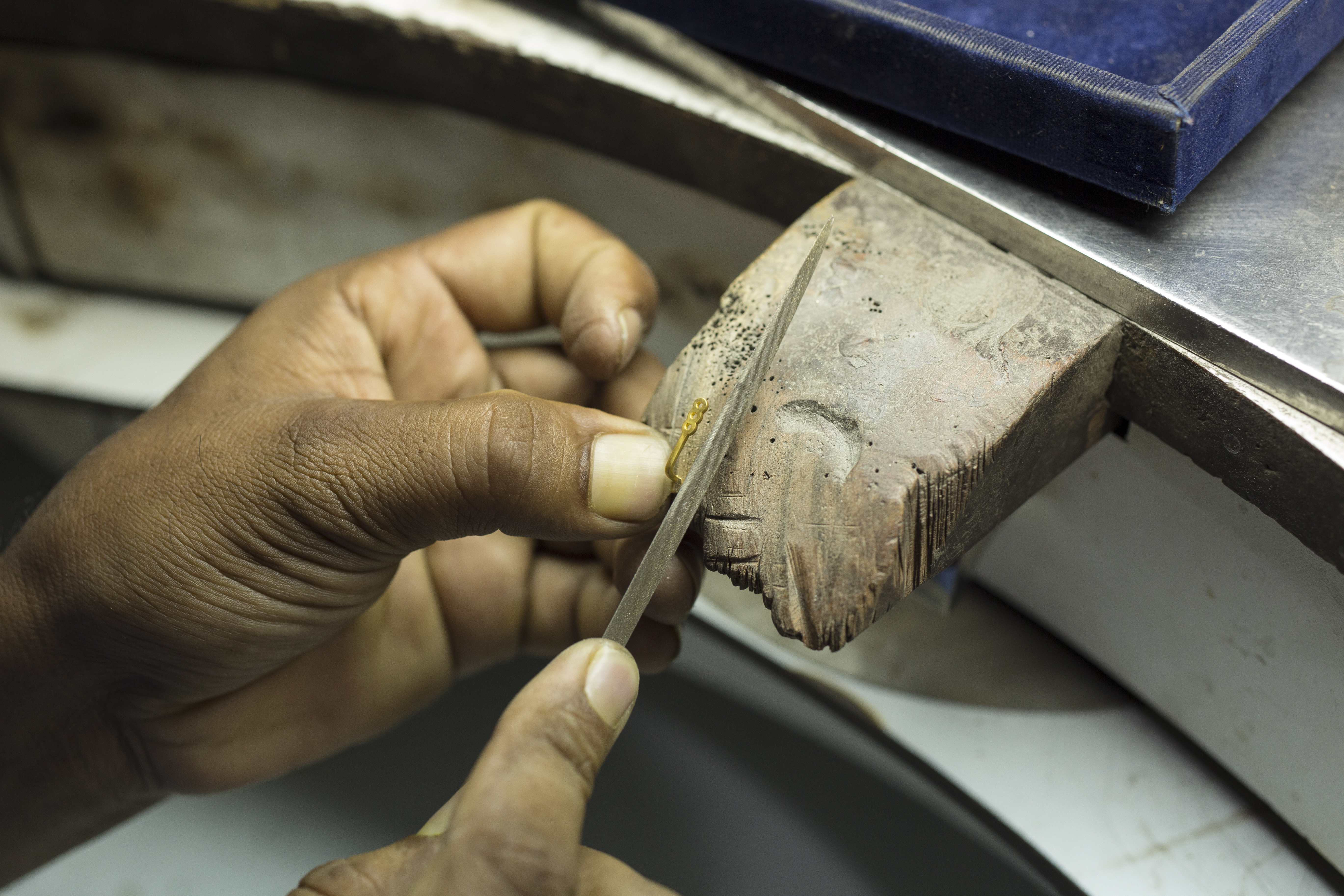 工房内はハイブランドの生産を手掛けていることもあり、撮影は厳しく規制されています。事前にアポイントを入れても、工房内に入ることが許されるのはカメラマンのみ。今回は特別に、ARTIDA OUDのジュエリーを製作する様子を撮影。