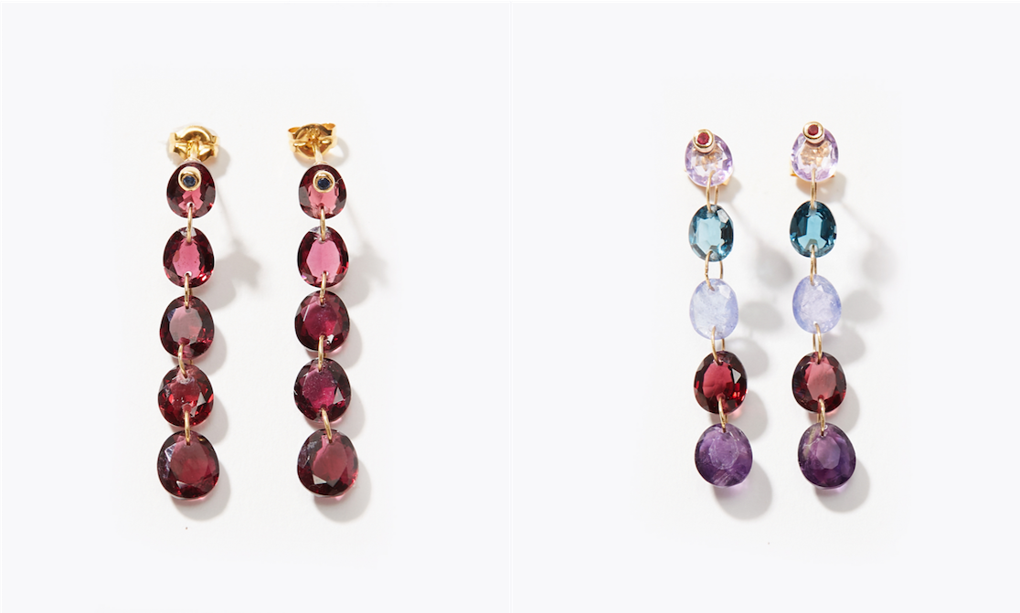 [eden] K10 rhodolite garnet teardrops pierced earring 33,000yen (with tax) / [eden] K10 multi stone teardrops pierced earring 37,400yen (with tax)