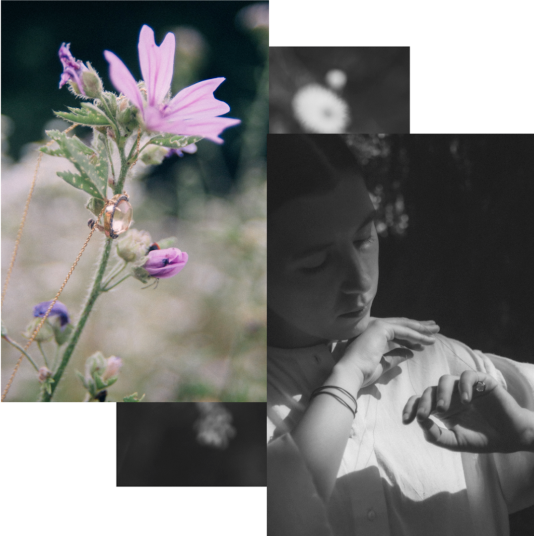 ちょうどARTIDA OUDがブランドを立ち上げたばかりのときに、声をかけていただきました。私の写真でブランドのビジョンを表現したいとお話をいただいて、とても光栄でした。実際にジュエリーを拝見したらどれも芸術的で、申し分なく優美で繊細。思わず魅了されてしまいました。