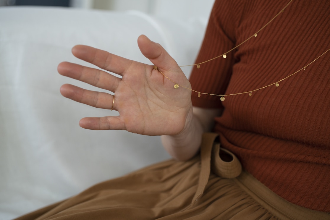 ―――うれしいです。今日つけていただいているネックレスは“sand”というシリーズで、コインがモチーフなんですよ。