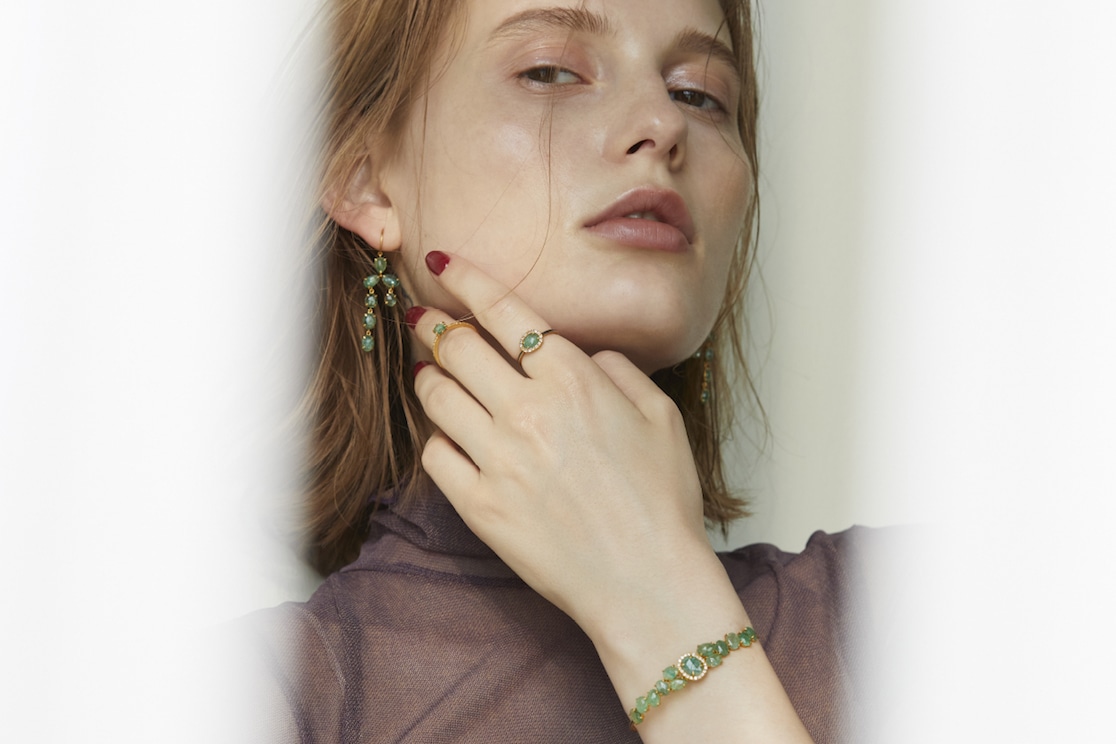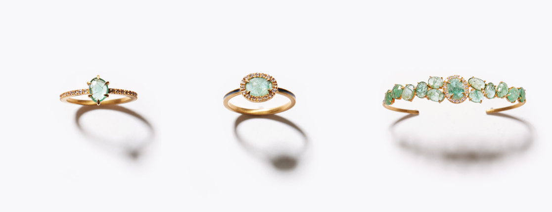 こちらは、同じデザインをエメラルドで再現したラインナップ。