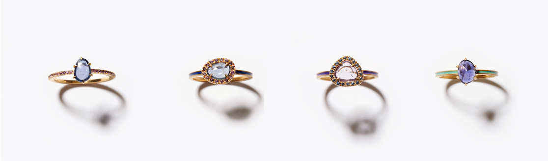 [eutopia] K10 blue sapphire pave amethyst eternity ring 44,000yen (with tax) / [eutopia] K10 tanzanite pave amethyst enamel ring 59,400yen (with tax) / [eutopia] K10 amethyst pave sapphire enamel ring 59,400yen (with tax) / [eutopia] K10 iolite enamel ring 59,400yen (with tax)