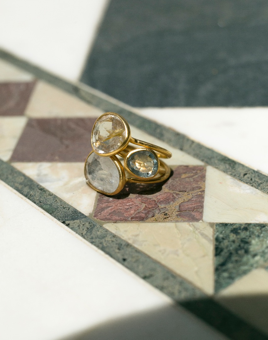 石は種類だけでなく大きさや形状も異なれば、内包しているインクルージョンの表情も違い一つひとつが個性に溢れています。ARTIDA OUDではインド・ジャイプールに赴き、感性を研ぎ澄ませながら山のように集められた中から商品にする石を選びます。その後石屋から工房へと向かい、石を持ち込んでリングにセッティングしてもらう工程を行ないますが、セレクトした石を地金にセットしていく時間はなんとも言えない喜びと楽しさに包まれます。さらに、リングが仕上がって手元に届くまでのワクワク感もまたかけがえのない時間です。そんな体験をARTIDA OUDのお客様にもお届けしたいという思いから、新しいコンテンツ「Stone Customize」が生まれました。