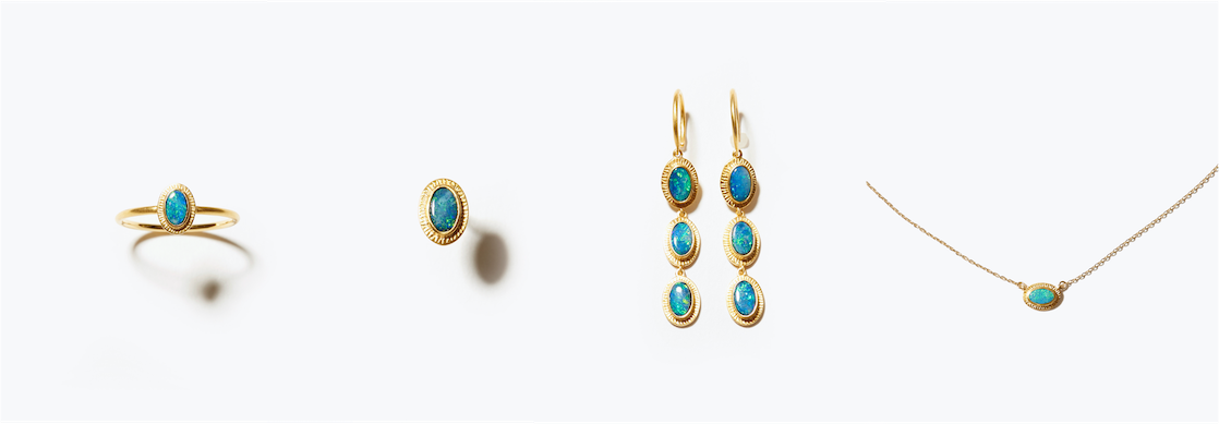[eutopia] 【2021 Spring Limited】 K10 boulder opal ancient texture ring 48,400yen (with tax) / [eutopia] 【2021 Spring Limited】 K10 boulder opal ancient texture stud single pierced earring 19,800yen (with tax) / [eutopia] 【2021 Spring Limited】 K10 boulder opal ancient texture drops pierced earring 89,100yen (with tax) / [eutopia] 【2021 Spring Limited】 K10 boulder opal ancient texture necklace 55,000yen (with tax)