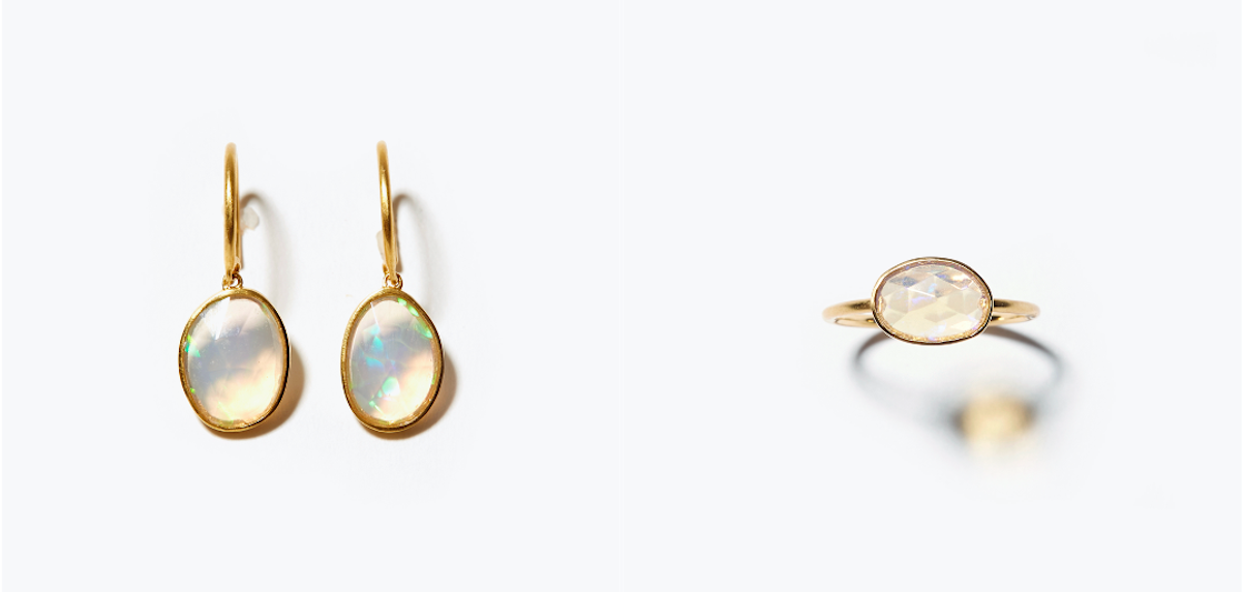 [eutopia] K10 white opal swing pierced earring 24,200yen (with tax) / [eutopia] K10 white opal ring 27,500yen (with tax)
