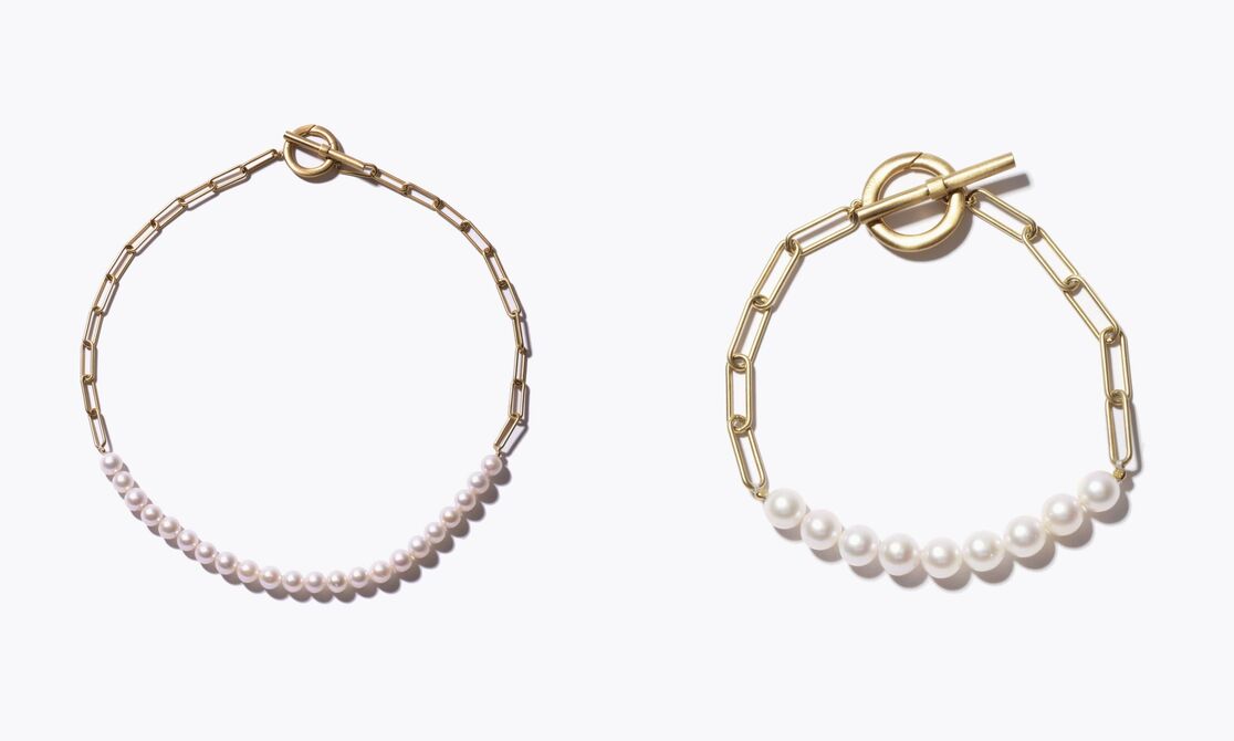 [philia] akoya pearl cable chain toggle choker 33,000yen (with tax) / [philia] akoya pearl cable chain toggle bracelet 19,800yen (with tax)