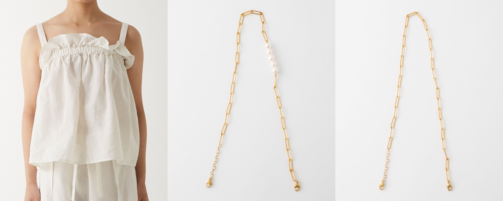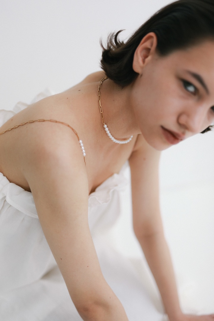 [collaboration] 【EQUALAND x ARTIDA OUD】 linen camisole with akoya pearl cable chain straps 26,400yen (with tax)