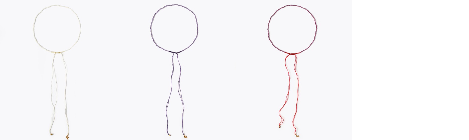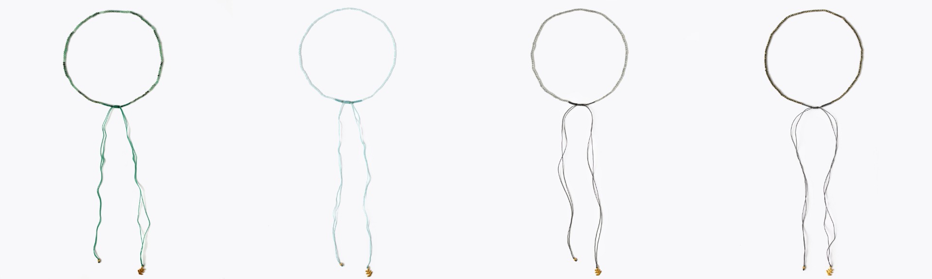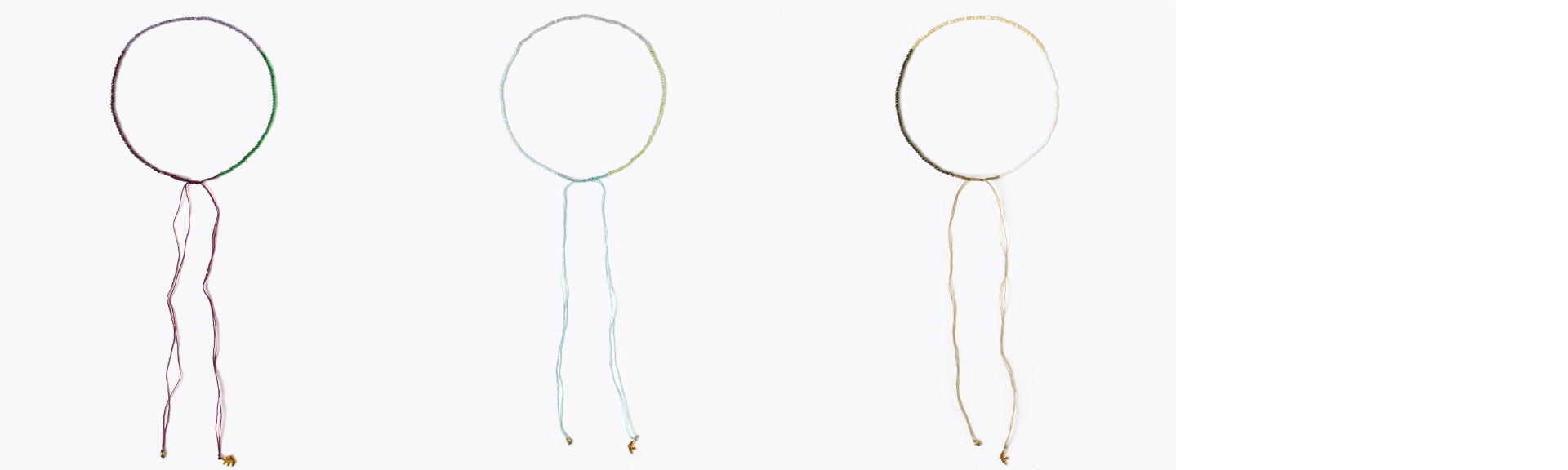 ブレスレットと同じつくりになっていて、紐の長さを自在に調整することでネックレスとしても楽しむことができます。