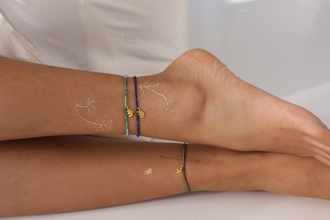 ゴールドのタゥーシールは、足元にもぜひお楽しみください。