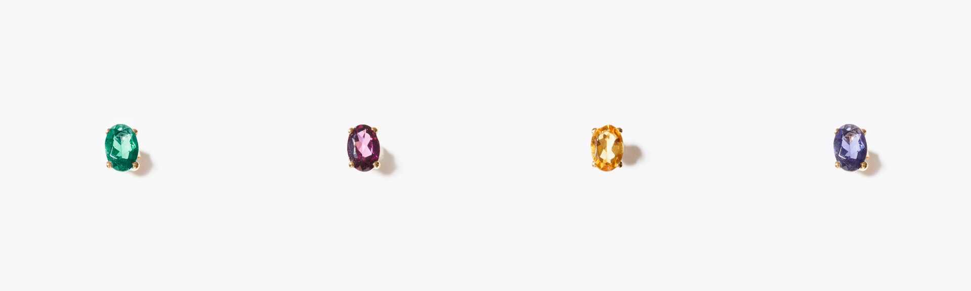 [eden] K10 oval emerald stud single pierced earring 6,600yen (with tax) / [eden] K10 oval rhodolite garnet stud single pierced earring 5,500yen (with tax) / [eden] K10 oval citrine stud single pierced earring 5,500yen (with tax) / [eden] K10 oval iolite stud single pierced earring 5,500yen (with tax)
