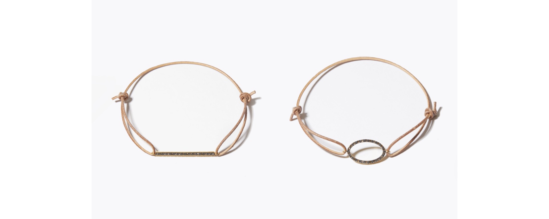 [I am donation] pave bar tanned leather bracelet 11,000yen (with tax) / [I am donation] pave oval circle tanned leather bracelet 11,000yen (with tax)