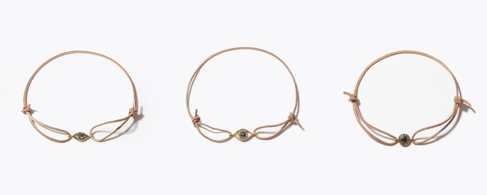 [I am donation] evil eye smoky quartz pave diamond tanned leather bracelet 11,000yen (with tax) / [I am donation] evil eye pyrite tanned leather bracelet 11,000yen (with tax) / [I am donation] jupiter smoky quartz pave diamond tanned leather bracelet 11,000yen (with tax)
