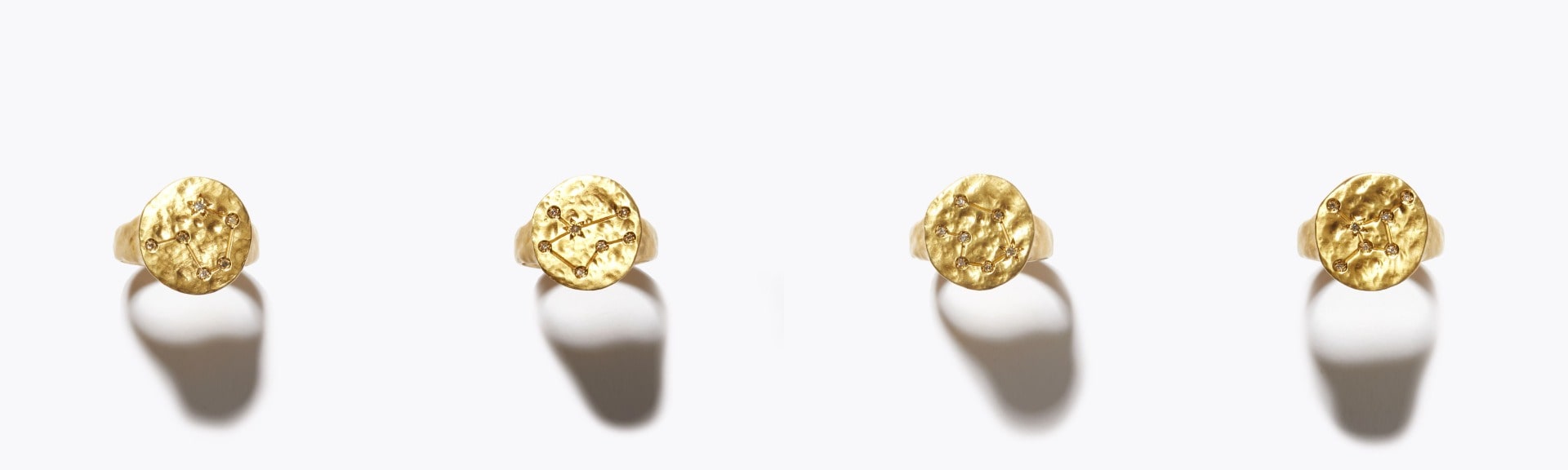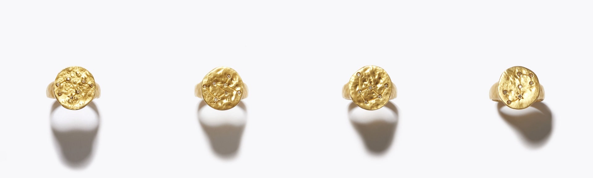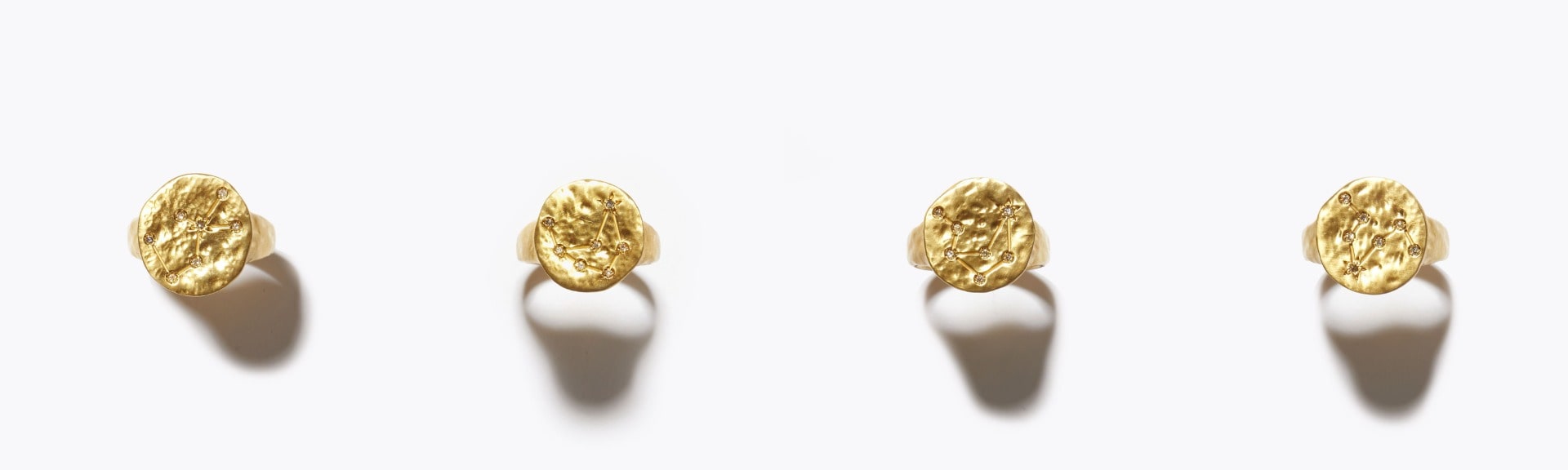 12星座の輪郭を彫り込み、星の部分にダイヤモンドを埋め込んだシグネットリング。