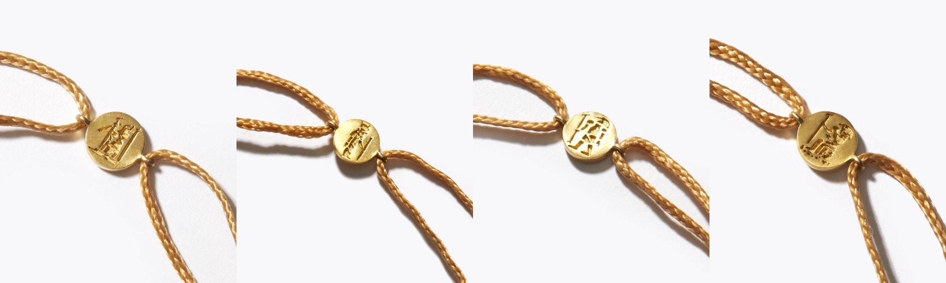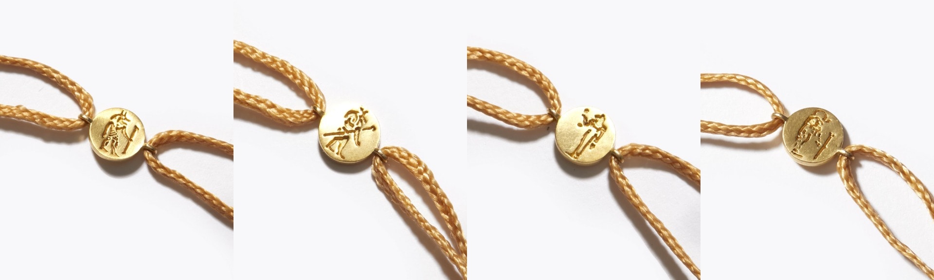古代エジプト星座を彫り入れた、プチサイズのコインチャームを、シックなゴールドのコードに添えました。