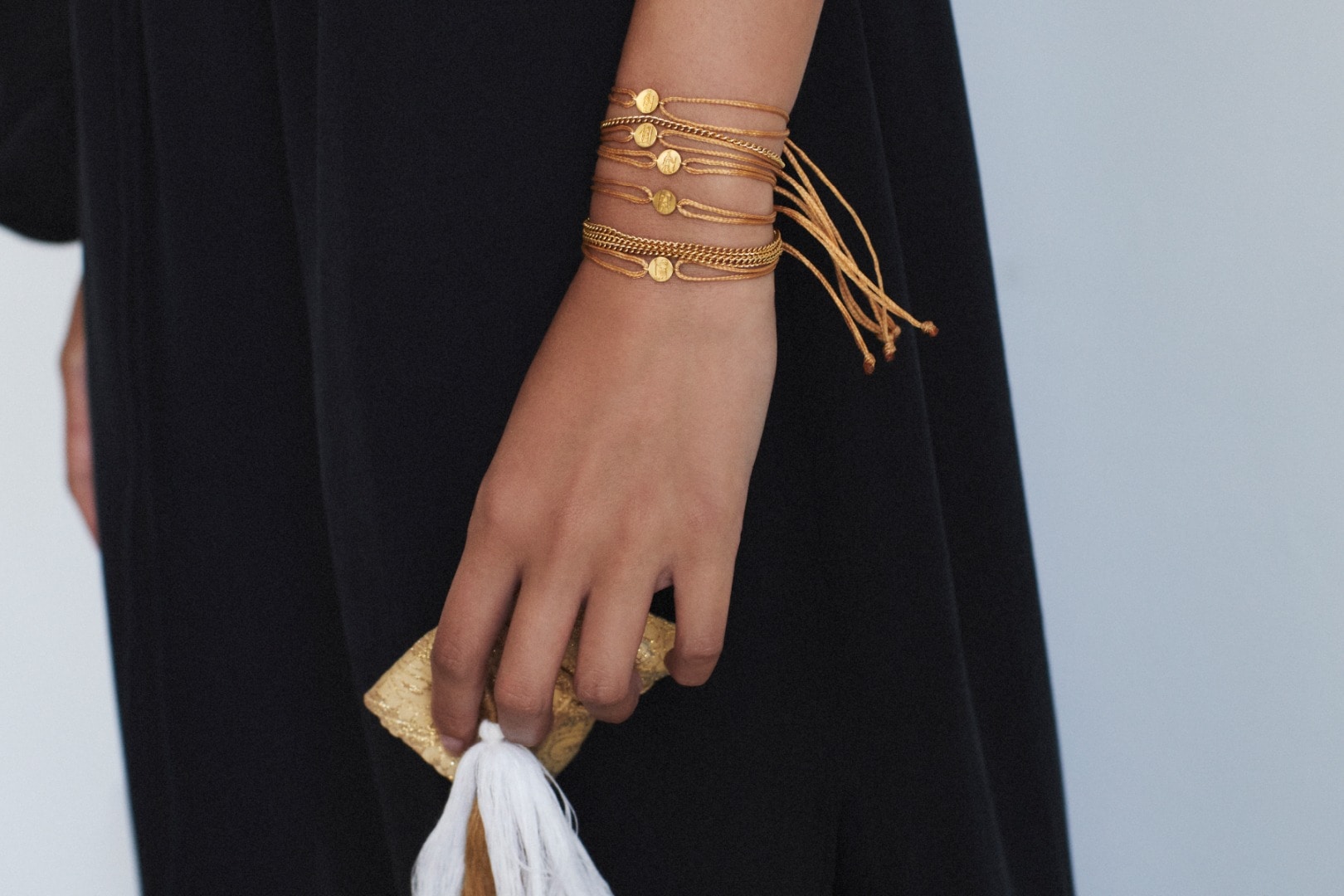 こちらのコードブレスレットは、紐組みの過程をインドの女性を支援するNGOにて制作しています。