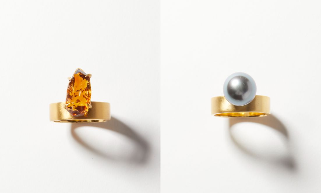 [ancient] rough citrine wide band ring 19,800yen (with tax) / [ancient] tahiti pearl wide band ring 19,800yen (with tax)