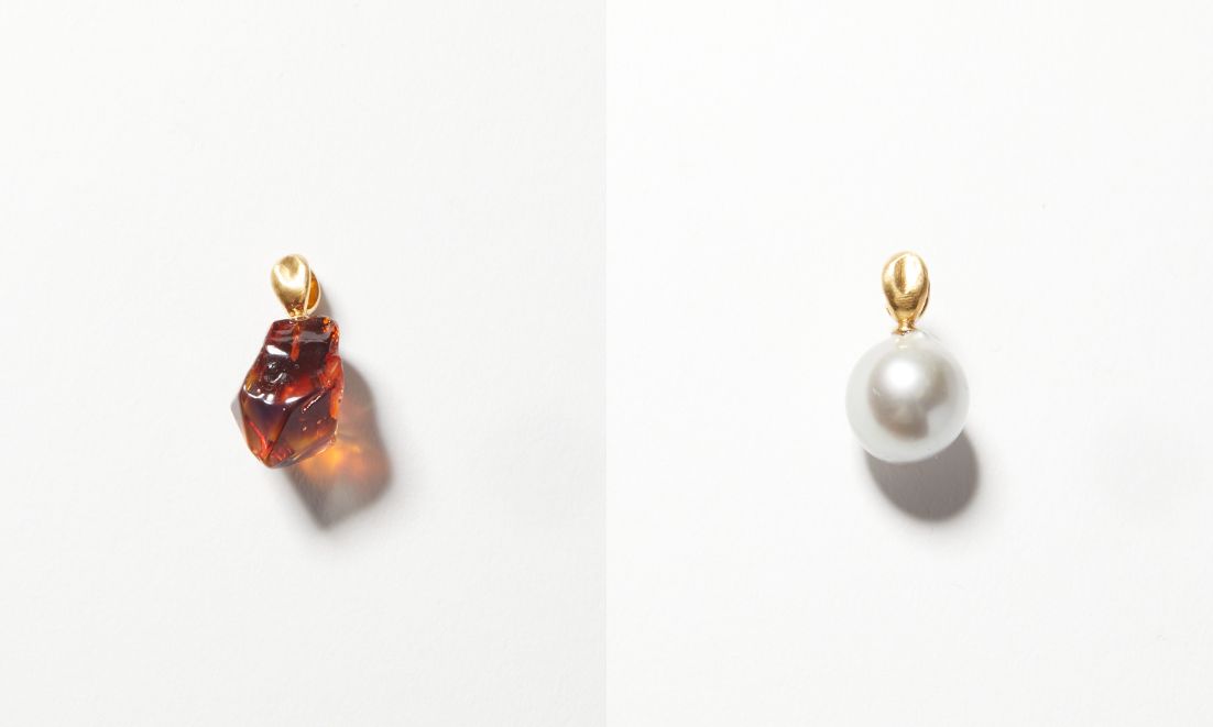 [ancient] rough citrine charm 11,000yen (with tax) / [ancient] tahiti pearl charm 11,000yen (with tax)