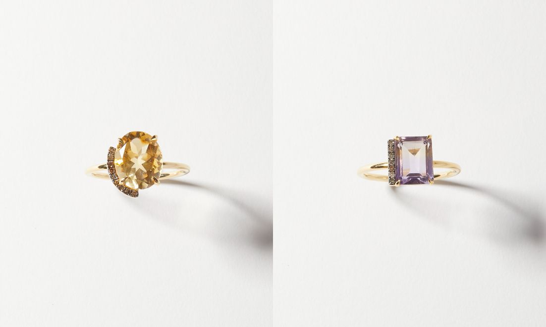 [elafonisi] oval citrine pave diamond ring 27,500yen (with tax) / [elafonisi] rectangle ametrine pave diamond ring 26,400yen (with tax)