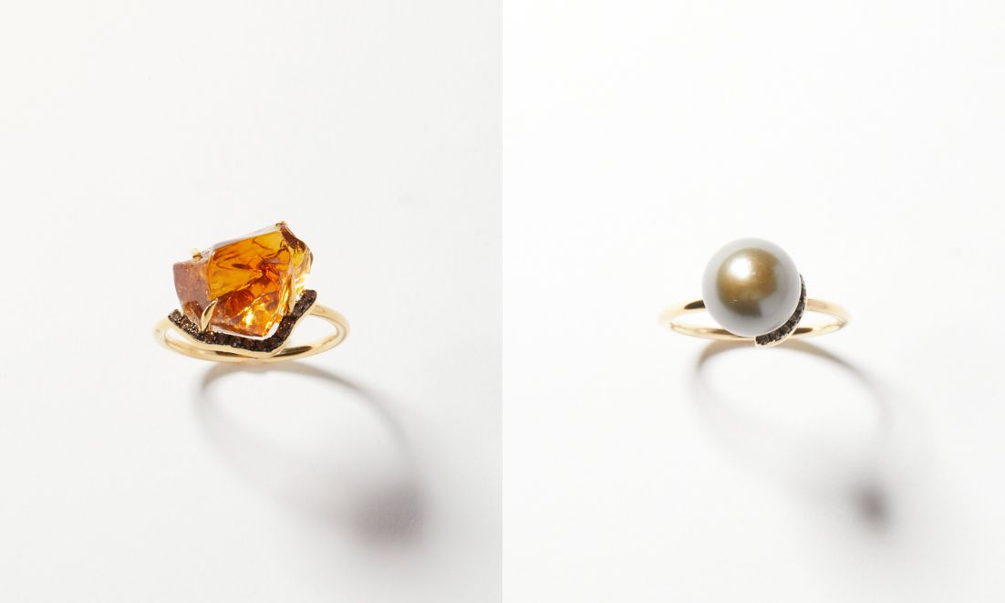 [elafonisi] rough citrine pave diamond ring 27,500yen (with tax) / [elafonisi] tahiti pearl pave diamond ring 22,000yen (with tax)