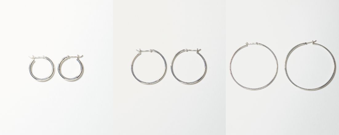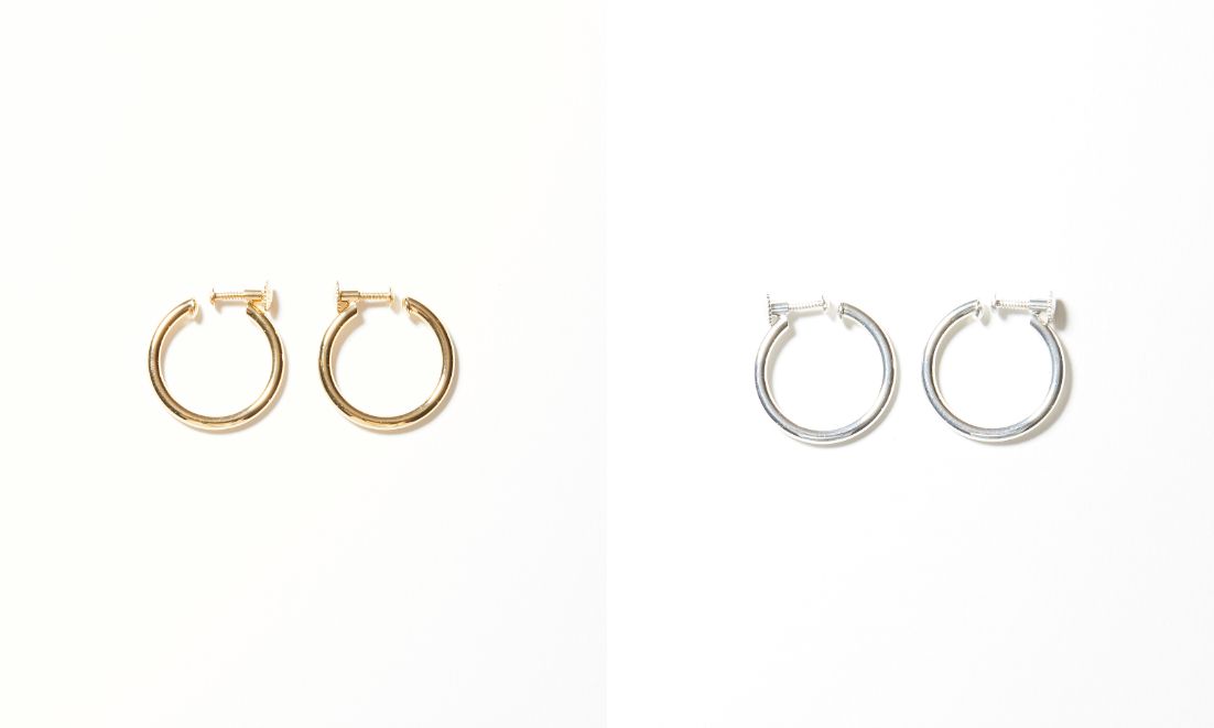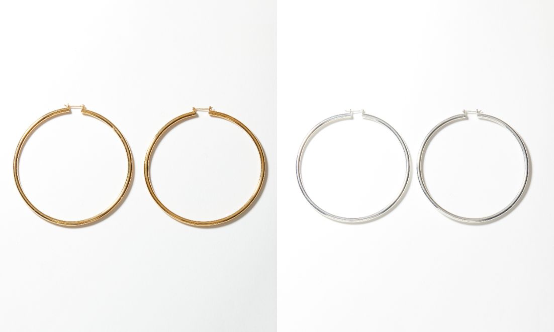 [bone] organic thin small hoop ear clip 17,600yen (with tax)/ [bone] organic thin middle silver hoop pierced earring 16,500yen (with tax)/ [bone] organic thin large hoop pierced earring 17,600yen (with tax)