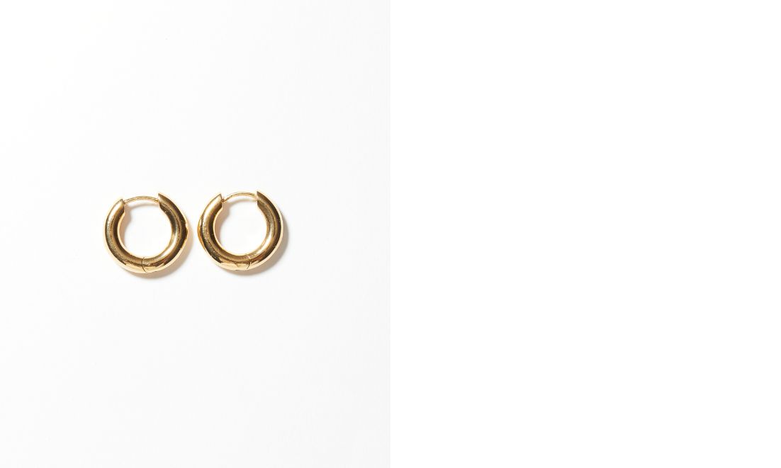 次にご紹介する新作は、ぽってりとした丸みを帯びたフープが存在感を放つミニマルなピアス。カチッと止めるキャッチレスなデザインなので、着脱のしやすさもポイントです。こちらはゴールドのみの展開となります。