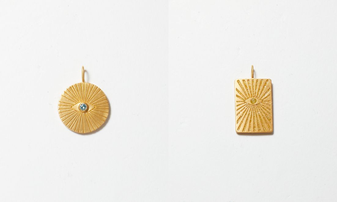 最初にご紹介するのは、鋭い眼差しで邪視を睨み返し、人々を守る魔除けのシンボル、evil eyeを象った人気のモチーフ。目の中心に、カラーのラボグロウンダイヤモンドを埋め込みました。お守りのように、身につけていただくのもオススメです。