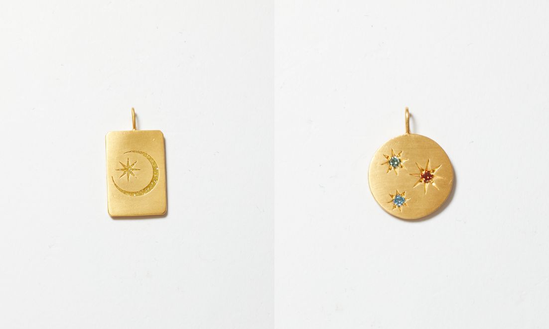 [ancient] lab diamond new moon rectangle plate charm 18,700yen (with tax)/ [ancient] lab diamonds star circle plate charm 22,000yen (with tax)