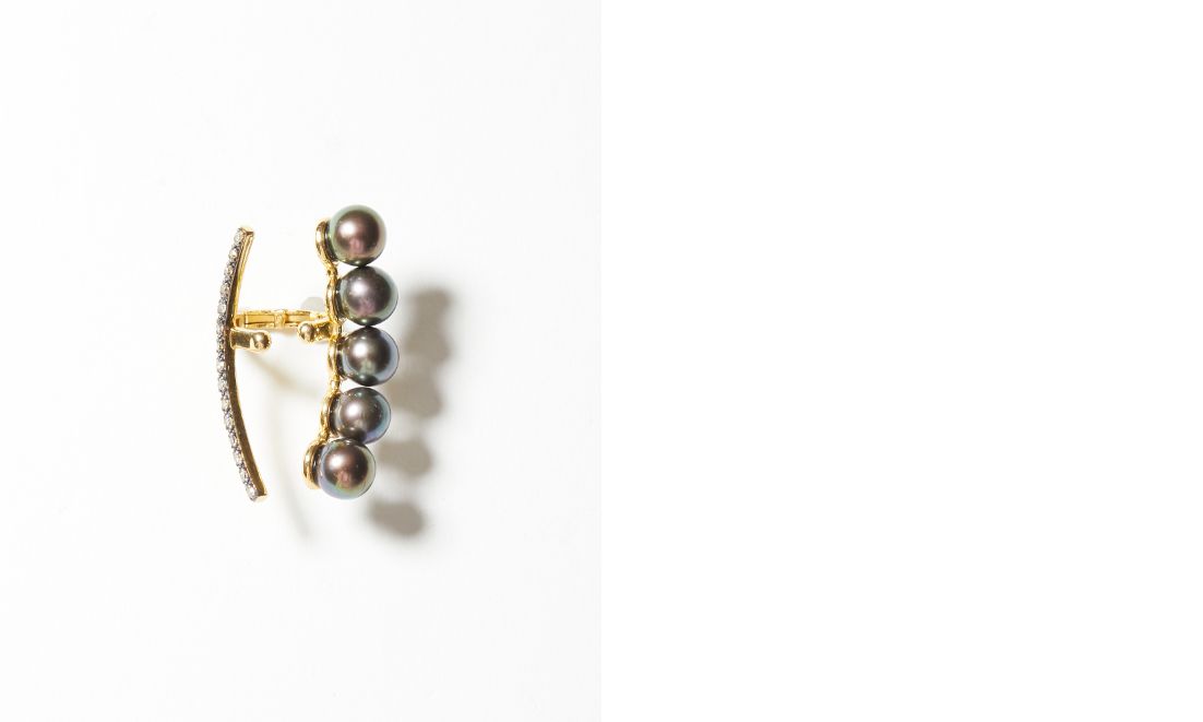 シックなグレーパールが連なり、耳たぶに沿うようにカーブを描いたイヤーチャーム。耳下から覗く様子がモダンなデザインです。カラーストーン、ダイヤモンド、パールなど、様々なスタッドピアスと組み合わせていただけます。