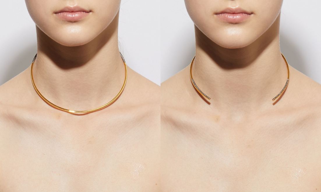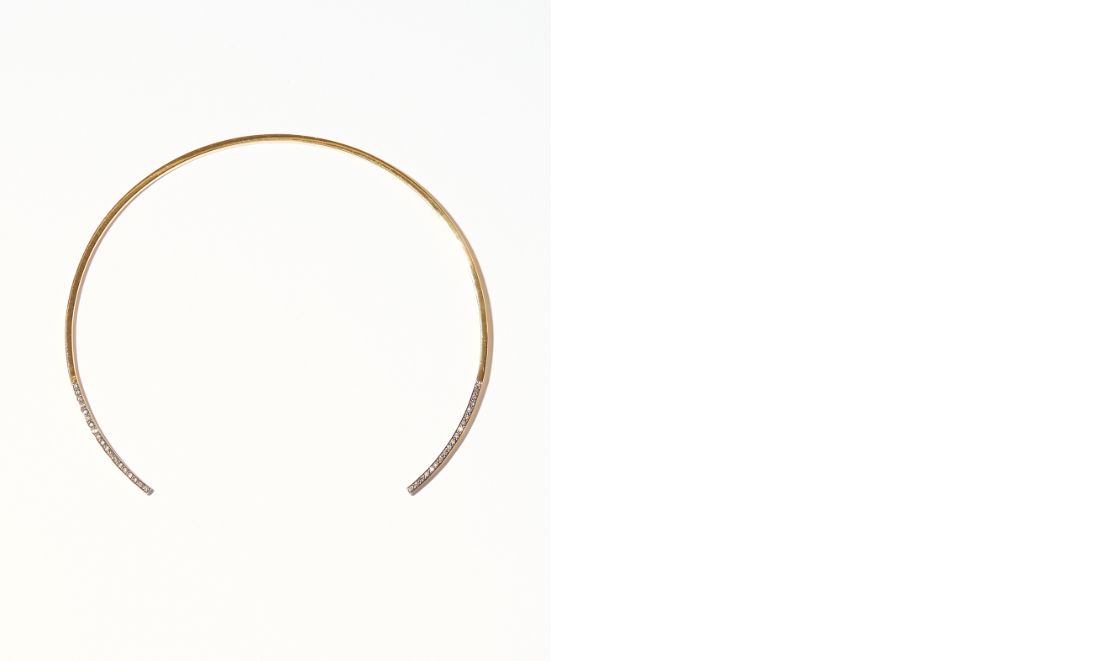 こちらは、美しい輝きを放つメレダイヤを埋め込んだ、シンプルで繊細なチョーカー。ダイヤモンドのパヴェをデコルテ側にして身につけると、より華やかな雰囲気をお楽しみいただけます。