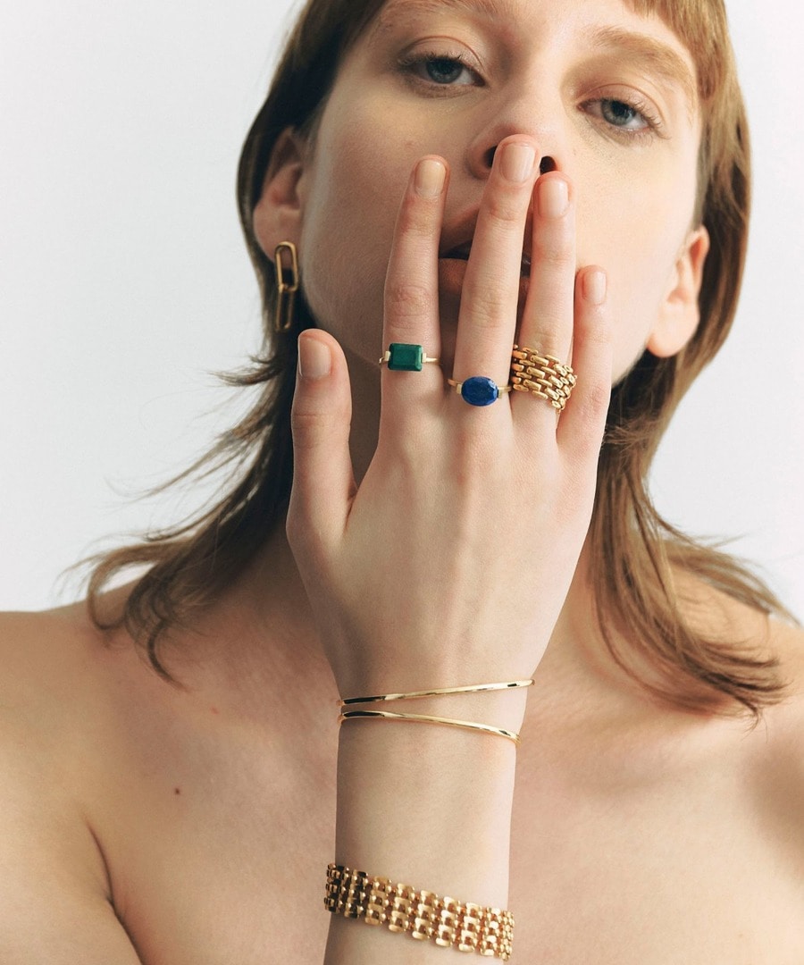 重ねづけの手元を楽しんでいただけるよう、繊細で華奢なデザインに仕上げました。S.M.Lでのサイズ展開なので、ご自身のサイズやお好みに合わせてお選びいただけます。サイズ違いでの重ねづけや、華奢なブレスレットとのレイヤードを自由にお楽しみください。
