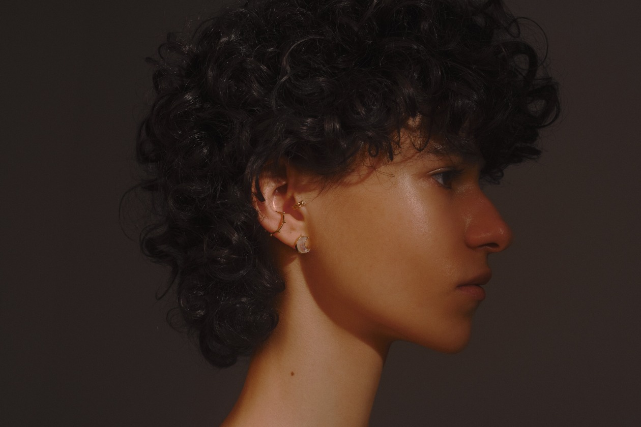 スタッドピアスはシングル販売なので、モデルのようにイヤーカフとのレイヤードや、アシンメトリーなイヤーコーディネートをお楽しみください。
