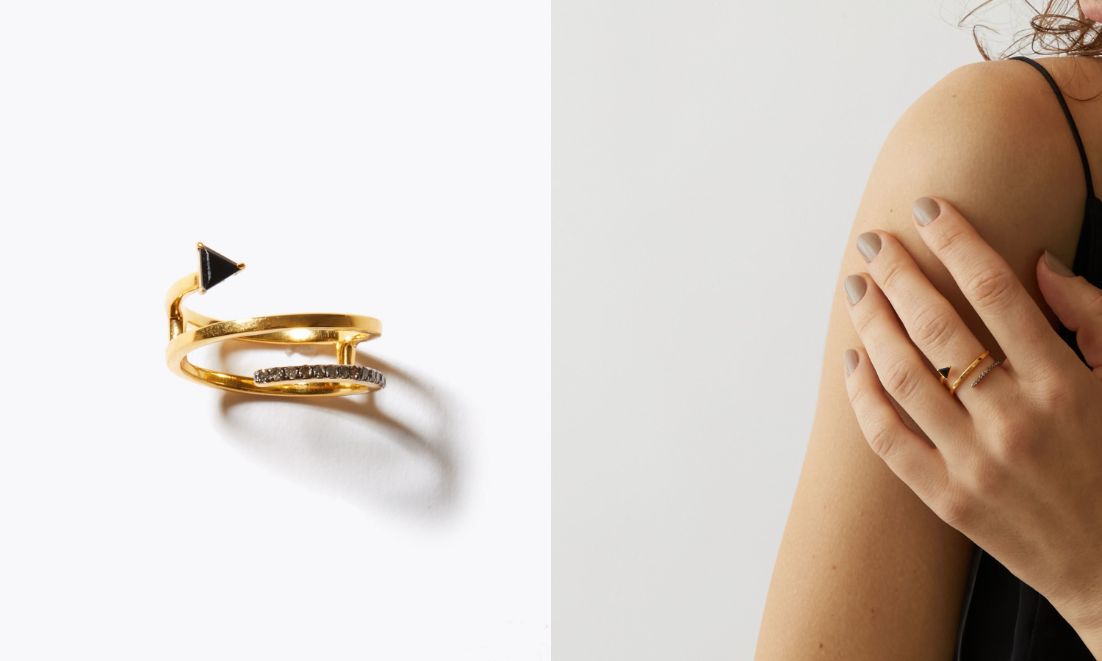 守護の意味をもつアロー(矢)をモチーフにした、漆黒に煌めくブラックスピネルをあしらったデザインが登場します。