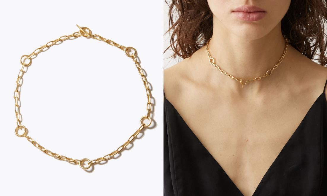 チョーカーは、6つのトグルにチャームをつけても、そのままでもシンプルにお使いただけます。二重に巻いたり、チェーンを半分外したりすると、ブレスレットとしても楽しめるマルチなチェーンです。