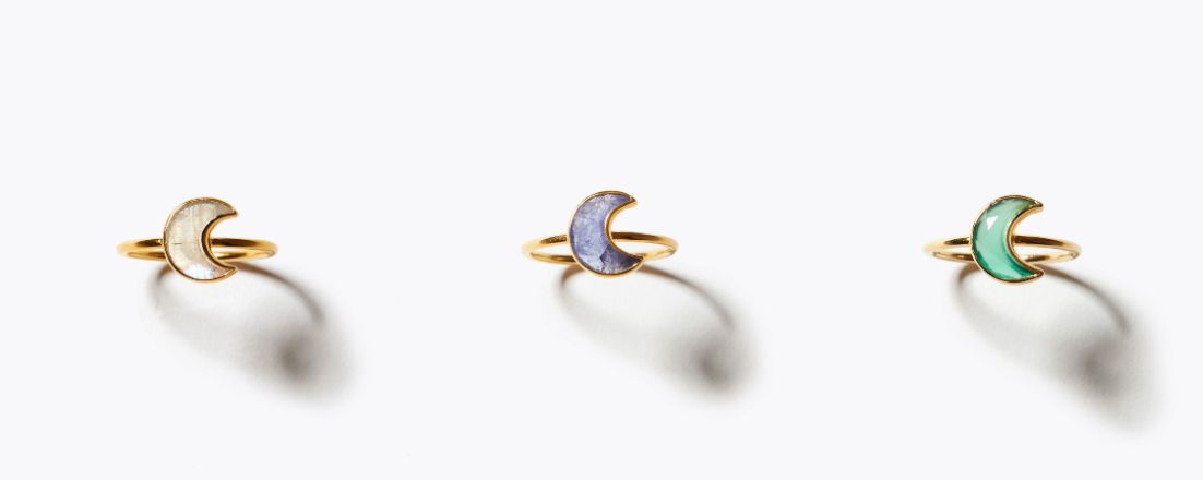 [selene] rainbow moonstone moon ring 16,500yen (with tax)/[selene] tanzanite moon ring 23,100yen (with tax)/[selene] green onyx moon ring 16,500yen (with tax)