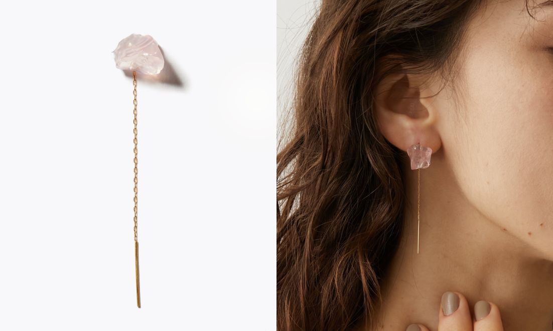 大自然が生み出す鉱物のありのままの形を活かした、ラフカットのカラーストーン。春らしい柔らかで透明度の高い石を、シンプルなピアスとイヤリングに仕上げました。クリアクォーツ、アクアマリン、ローズクォーツ、アメジストを使った新作アイテムを、それぞれのストーンが持つ意味とともにご紹介していきます。