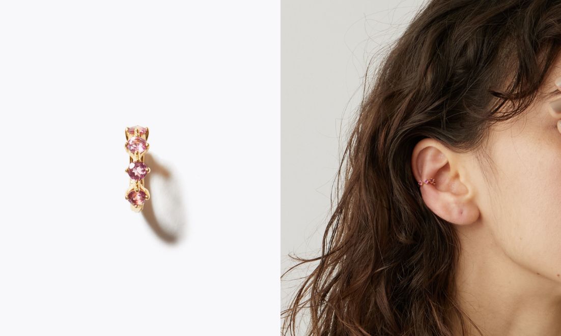 こちらはオープンリングのデザイン。つける向きを変えて、気分に合わせたスタイリングをお楽しみいただけます。耳に合う場合は、イヤーカフとしてもお使いいただくことが可能です。