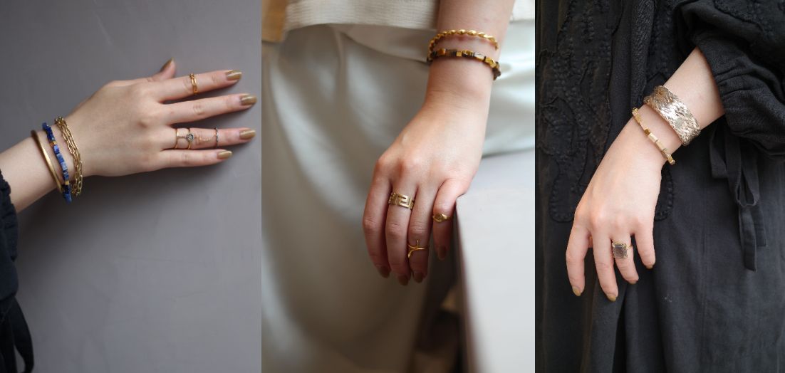 こちらのページの左下に今表示されている「お気に入りを探す」のポップアップ画像から、 “amulette”のブレスレットと合わせた、手元のスタイリングも提案しています。今の気分に寄り添い、あなたへのおすすめを診断させていただきます。ぜひトライしてみてくださいね。