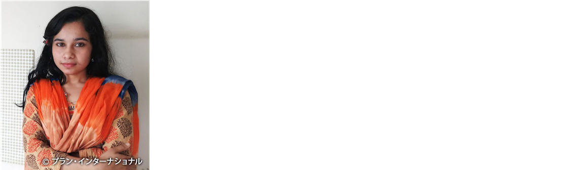 バングラデシュでプランの活動に参加し、自分自身も「早すぎる結婚」を退け教育を受け続けた19歳の大学生。さまざまな困難を乗り越え、教育を受け自立した女性として人生を歩み始めている。
