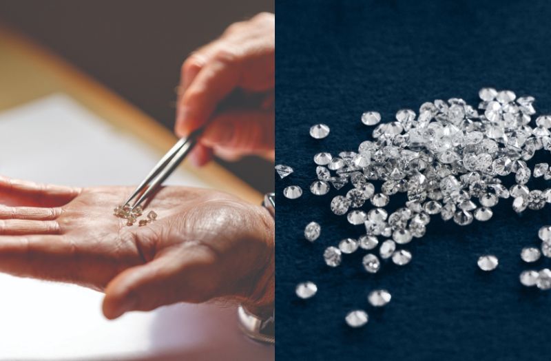 ダイバーが集めた砂利や貝殻を袋に入れて陸揚げし、専門スタッフにより探し出され、美しくカットされたダイヤモンド。
