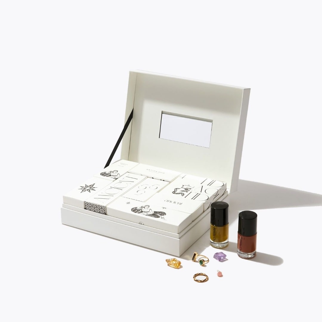ベルリンを拠点とするイラストレーター、Cynthia Kittler氏が描いた神秘的なイラストを載せた箱の中に、ARTIDA OUDからの小さなサプライズを詰め込みました。クリスマスへ向けて、毎日ひとつずつ箱を開けるのをぜひお楽しみください。また、箱の中には鏡を配しているので、アドベントボックスとして使用したその後はジュエリーケースとしてもお楽しみいただけます。